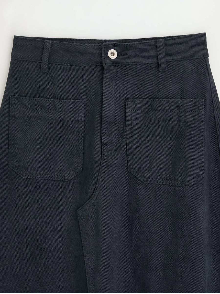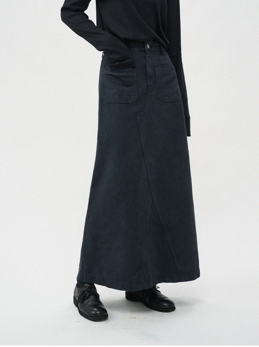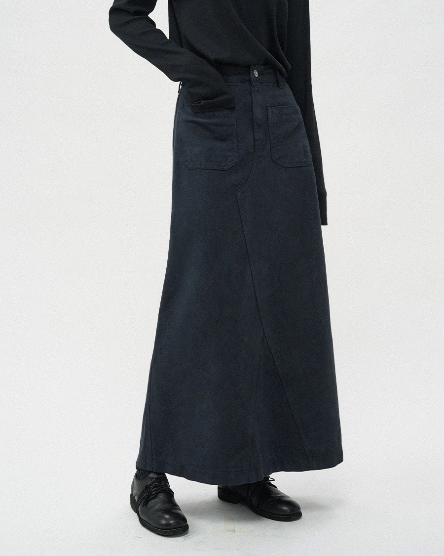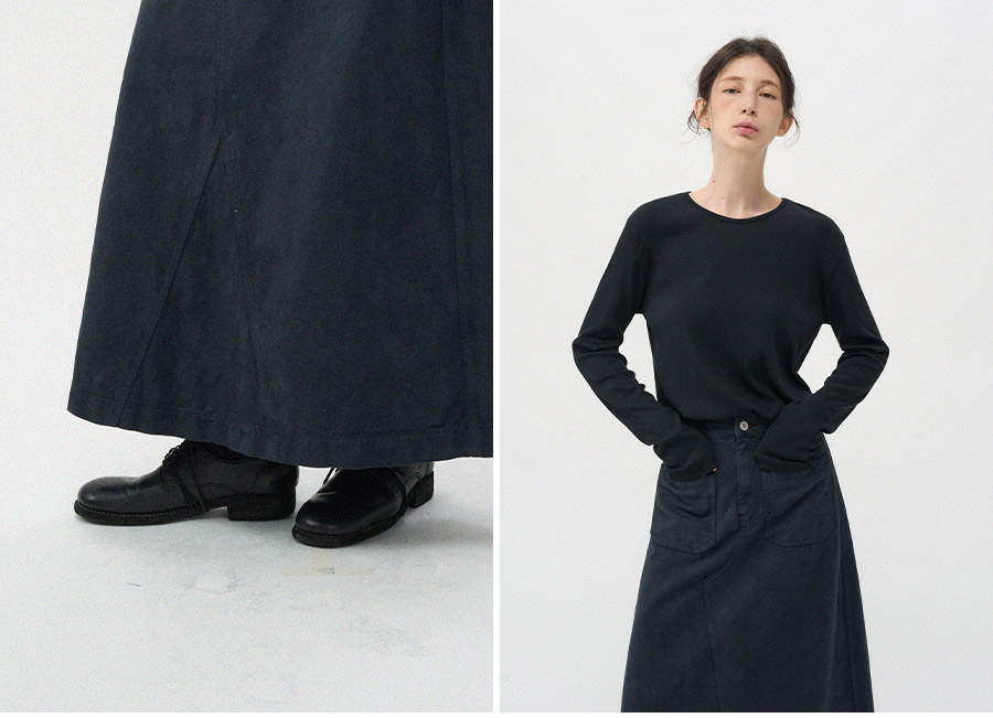 - 프론트의 투포켓 디테일이 스커트 전체 실루엣에 감각적인 포인트를 더해줍니다