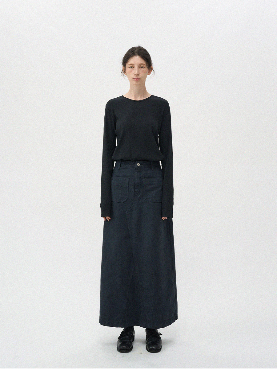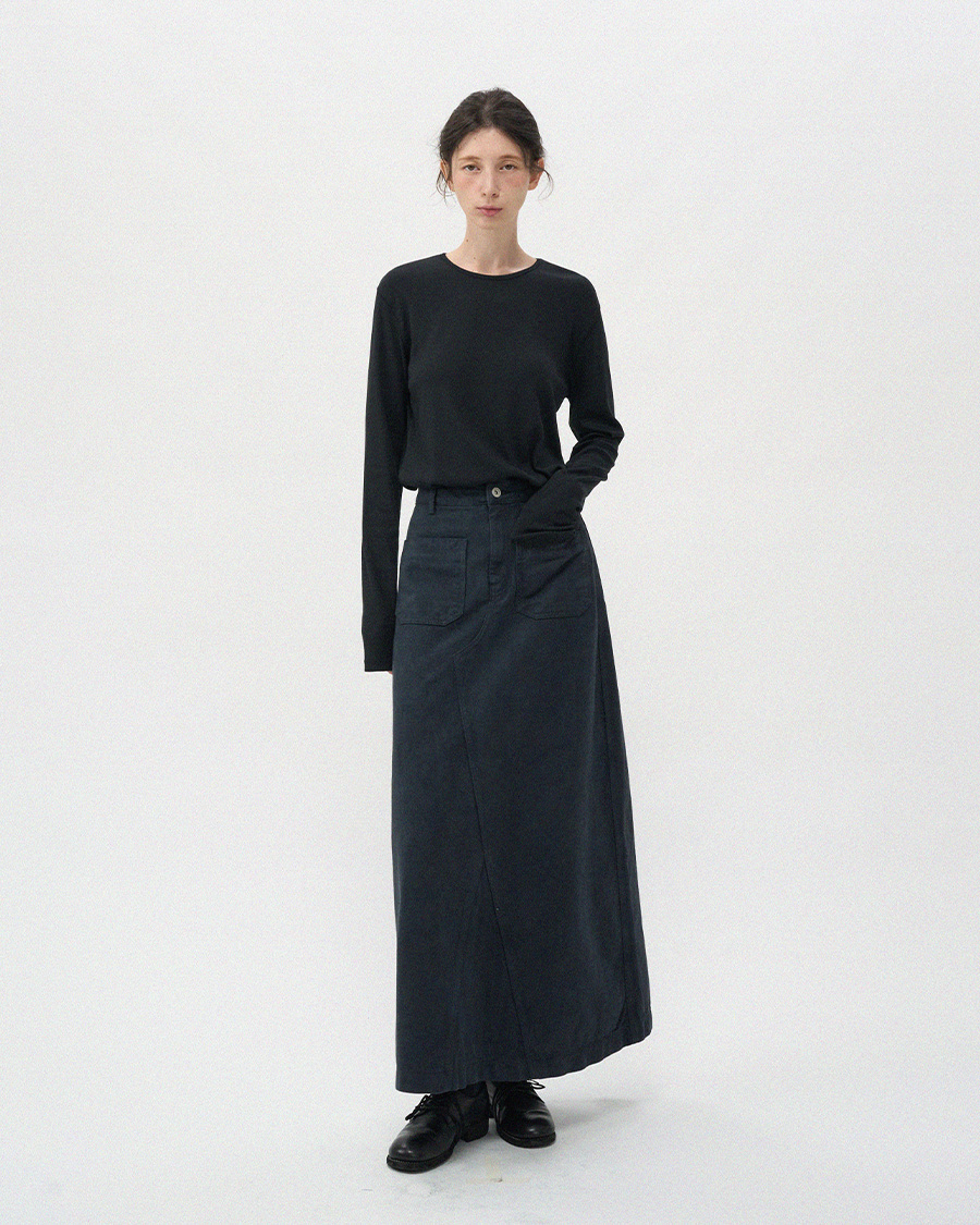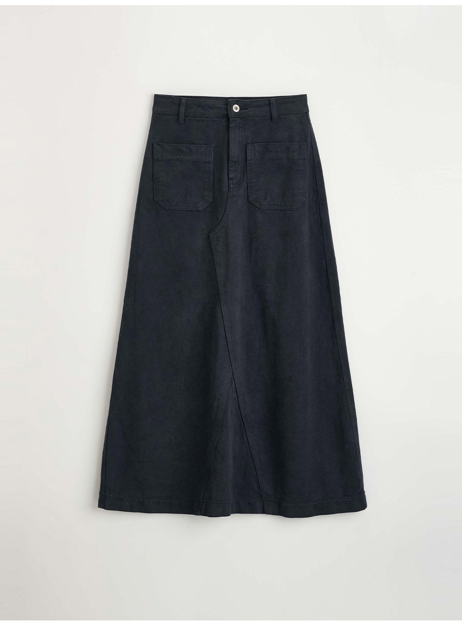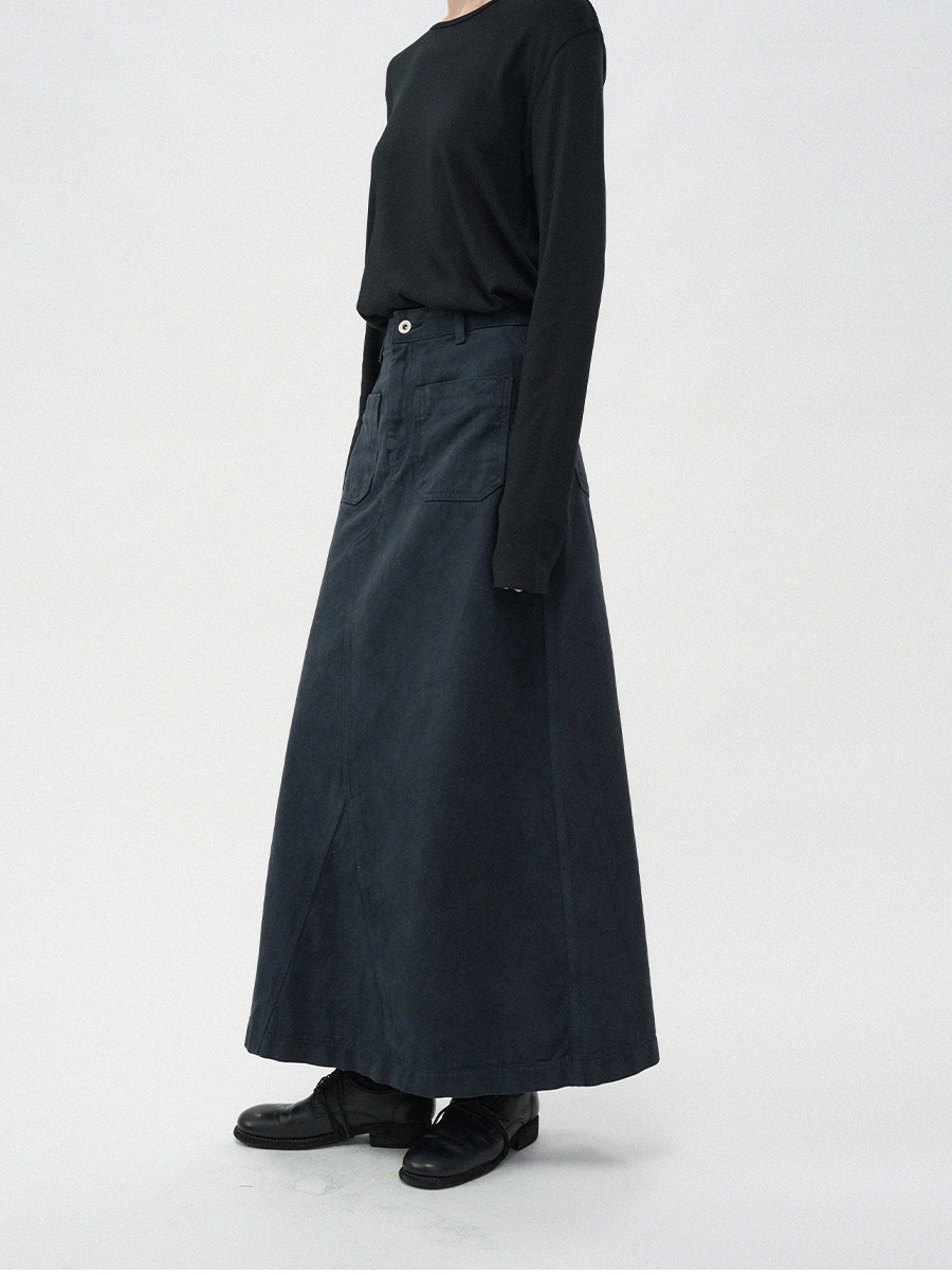 - 프론트의 투포켓 디테일이 스커트 전체 실루엣에 감각적인 포인트를 더해줍니다