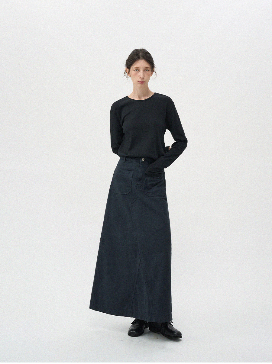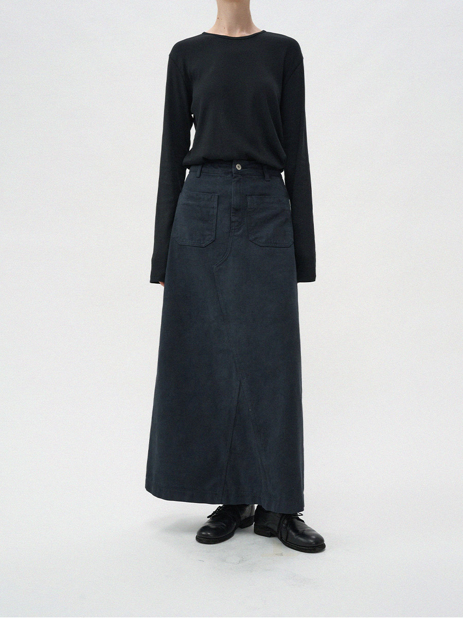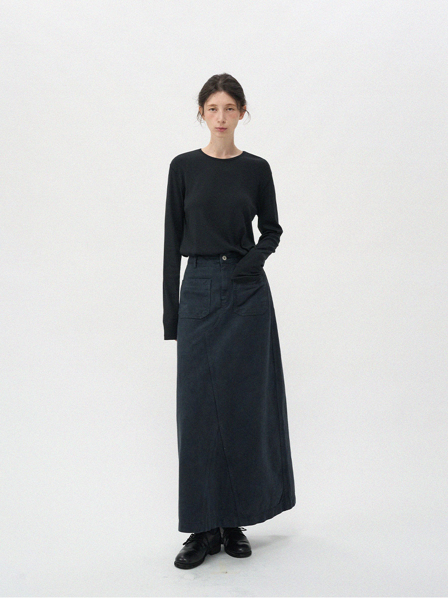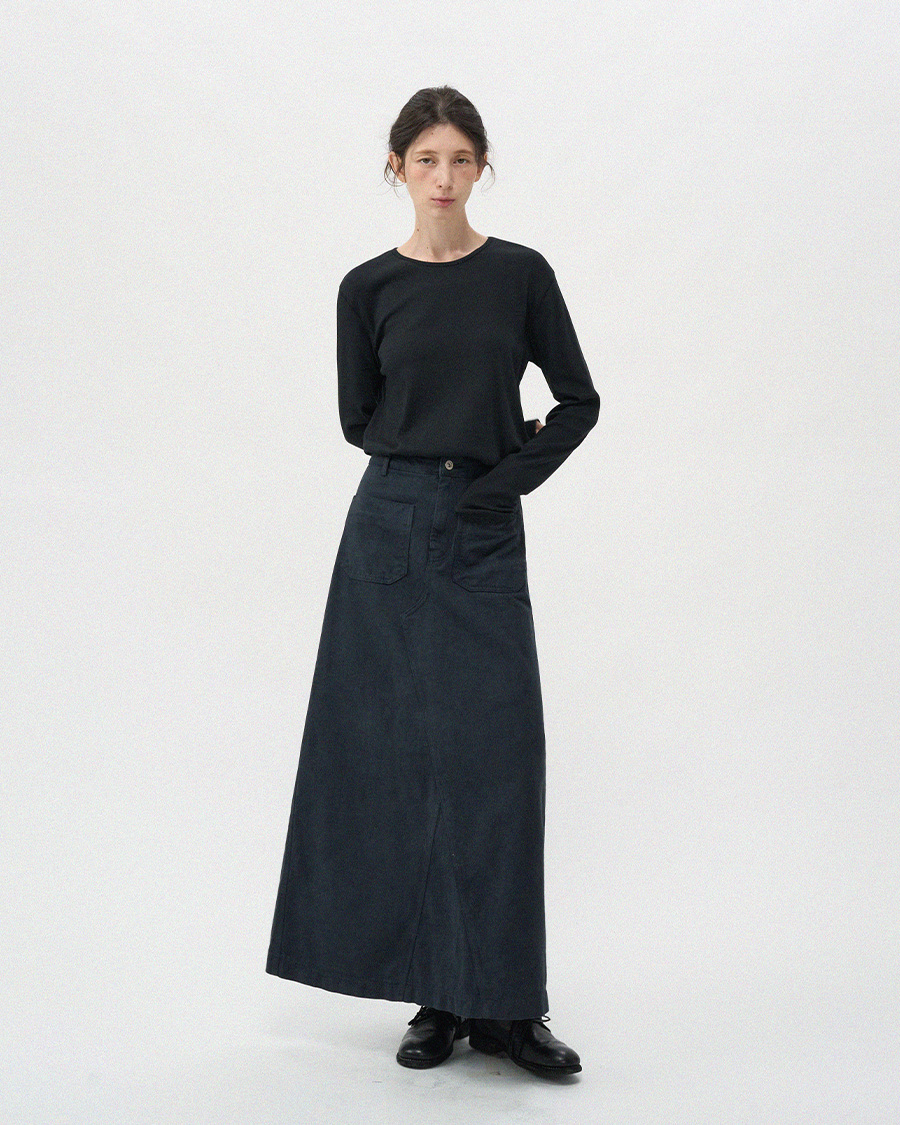 - 프론트의 투포켓 디테일이 스커트 전체 실루엣에 감각적인 포인트를 더해줍니다