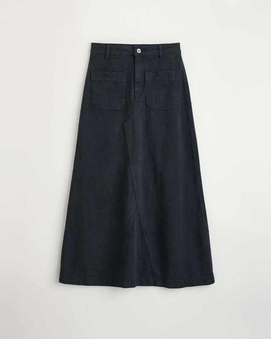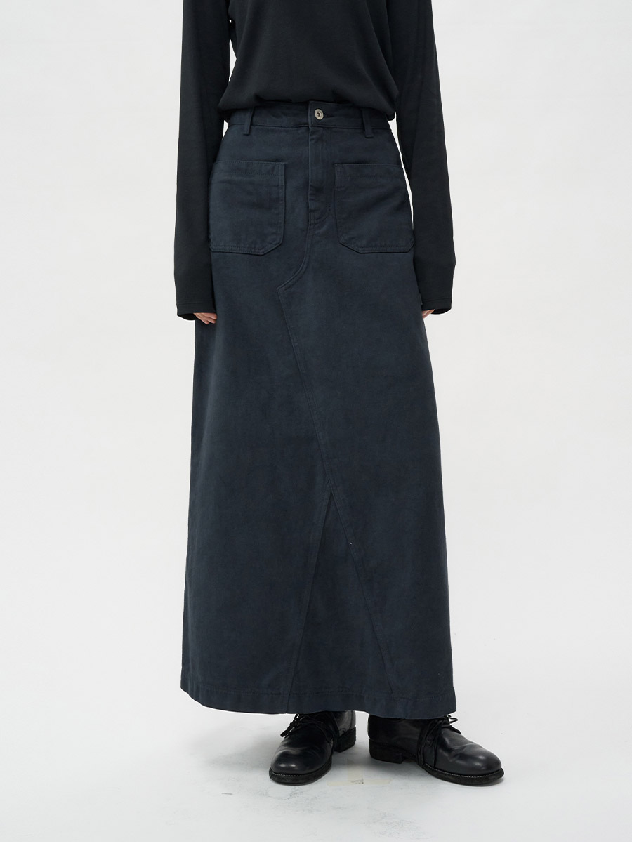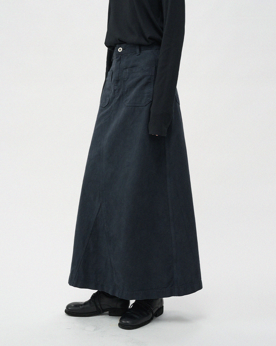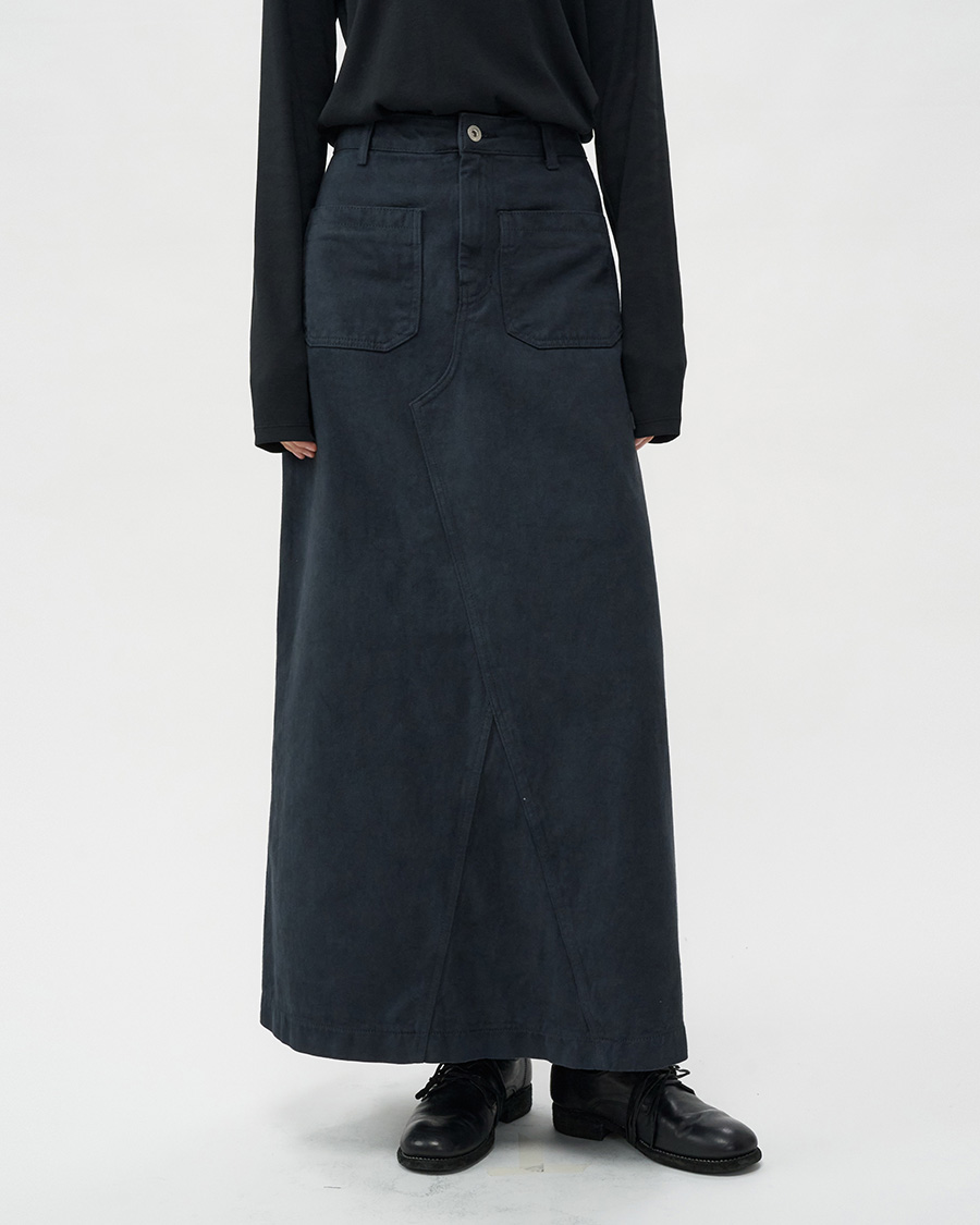 - 빈티지한 컬러감이 돋보이는 피그먼트 워싱 소재로 제작한 스커트 입니다