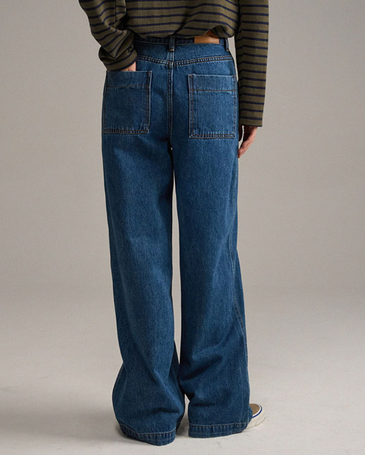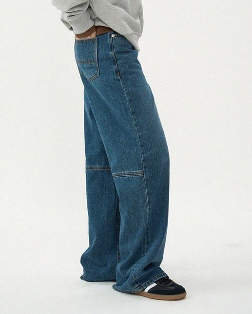 터크 와이드 데님 팬츠_mid blue