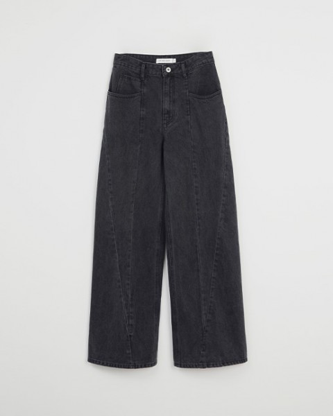 절개 포인트 와이드 데님 팬츠_black