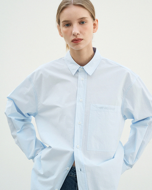 니즈 포켓 자수 코튼 셔츠_skyblue