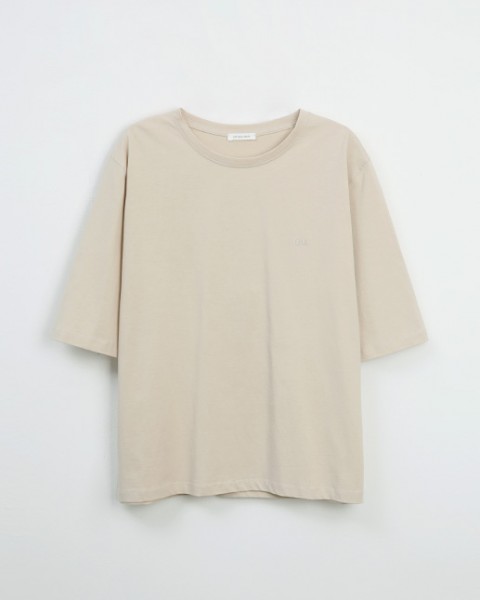 베이직 실켓 코튼 5부 티셔츠_butter beige