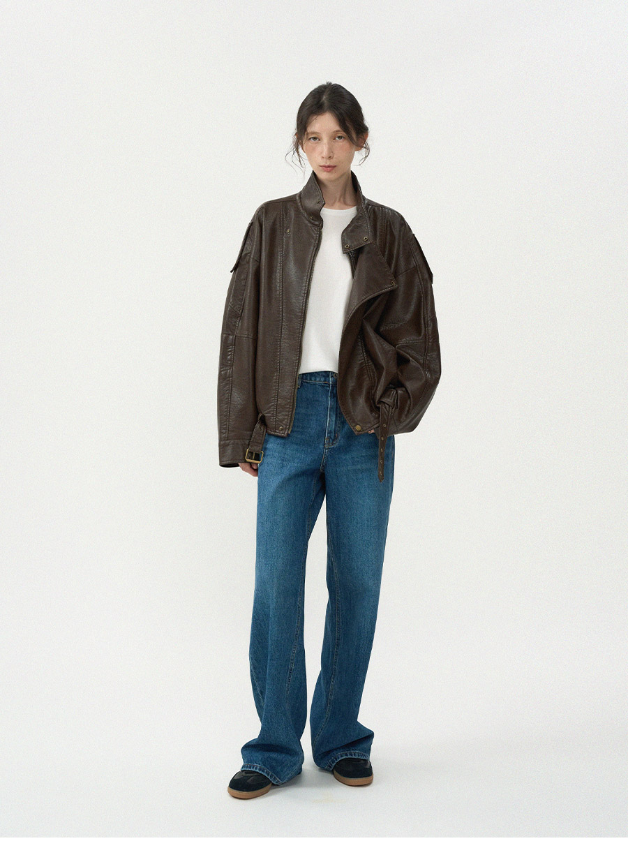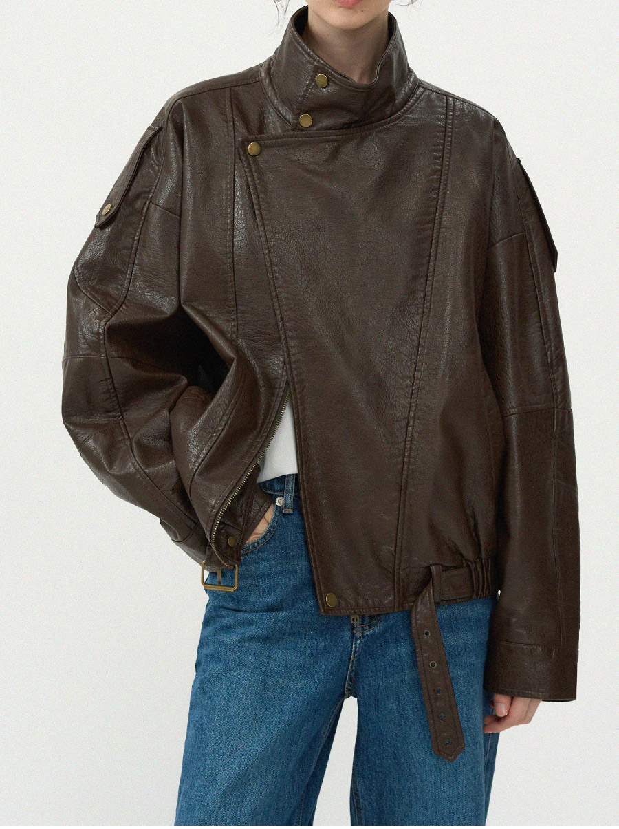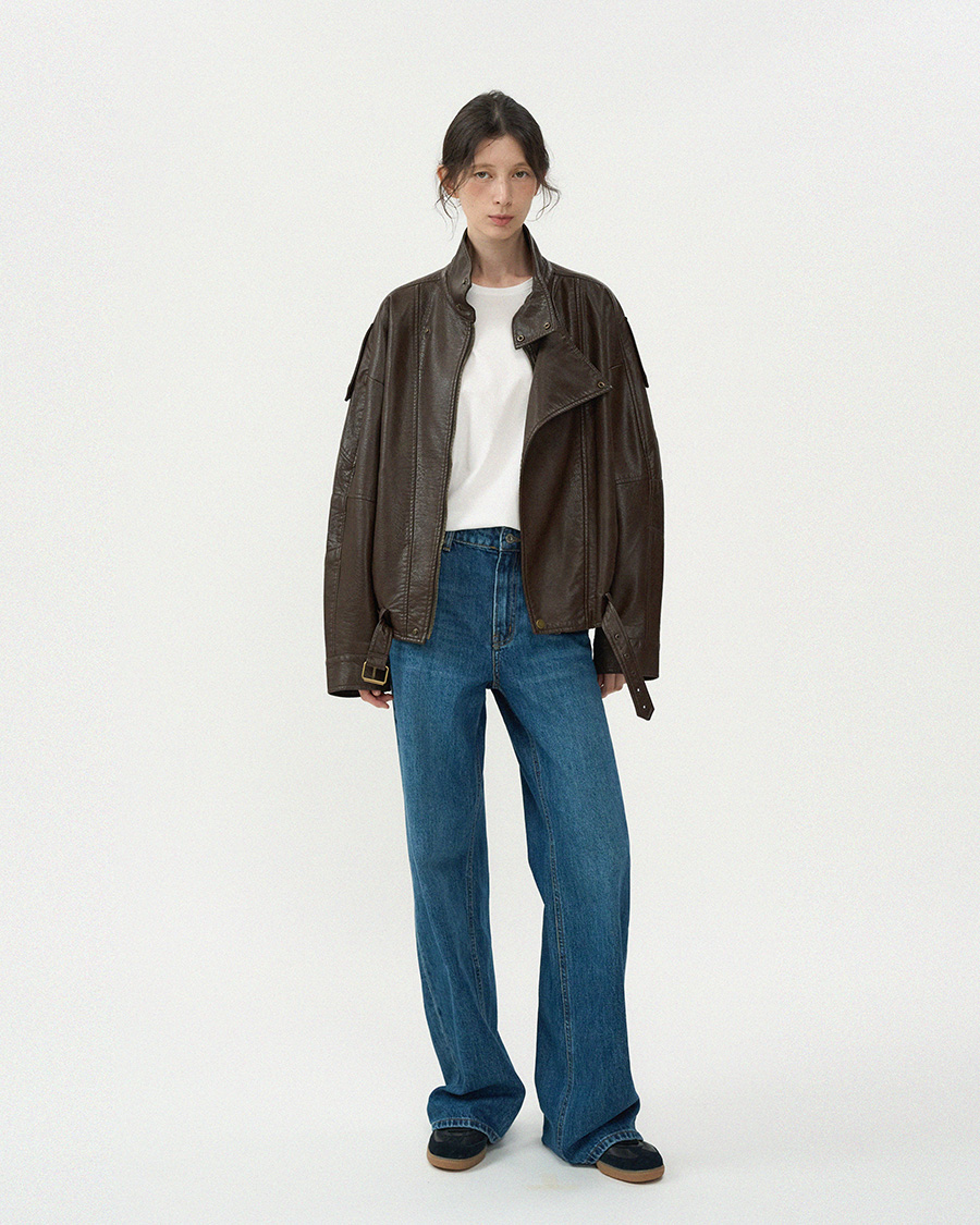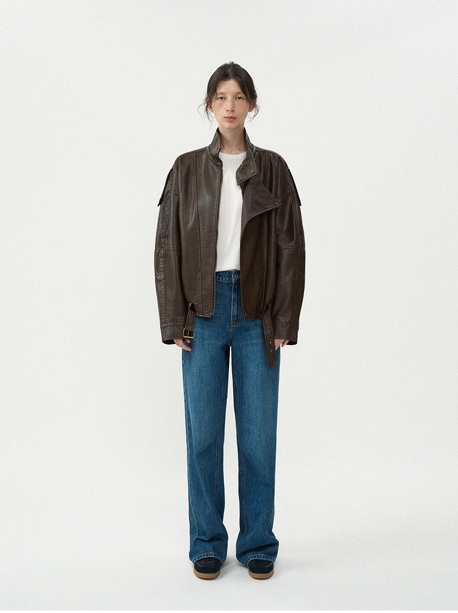 - 고급스러운 가죽 질감이 돋보이는 클래식 라이더 블루종 입니다