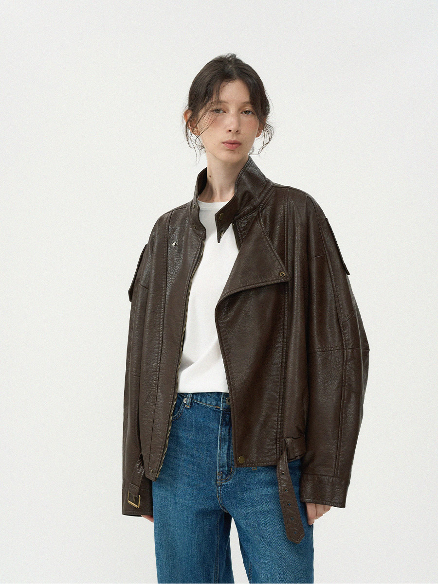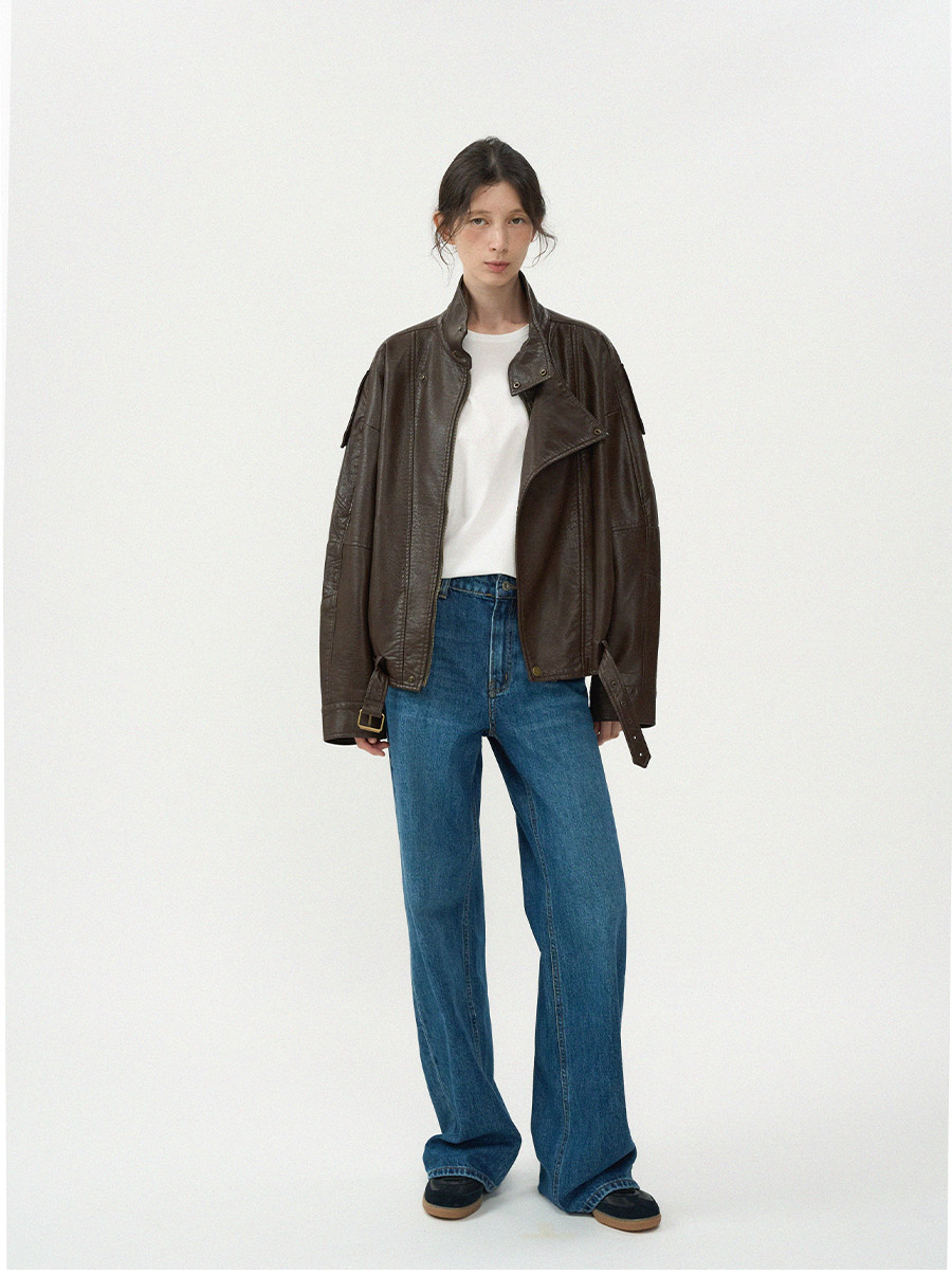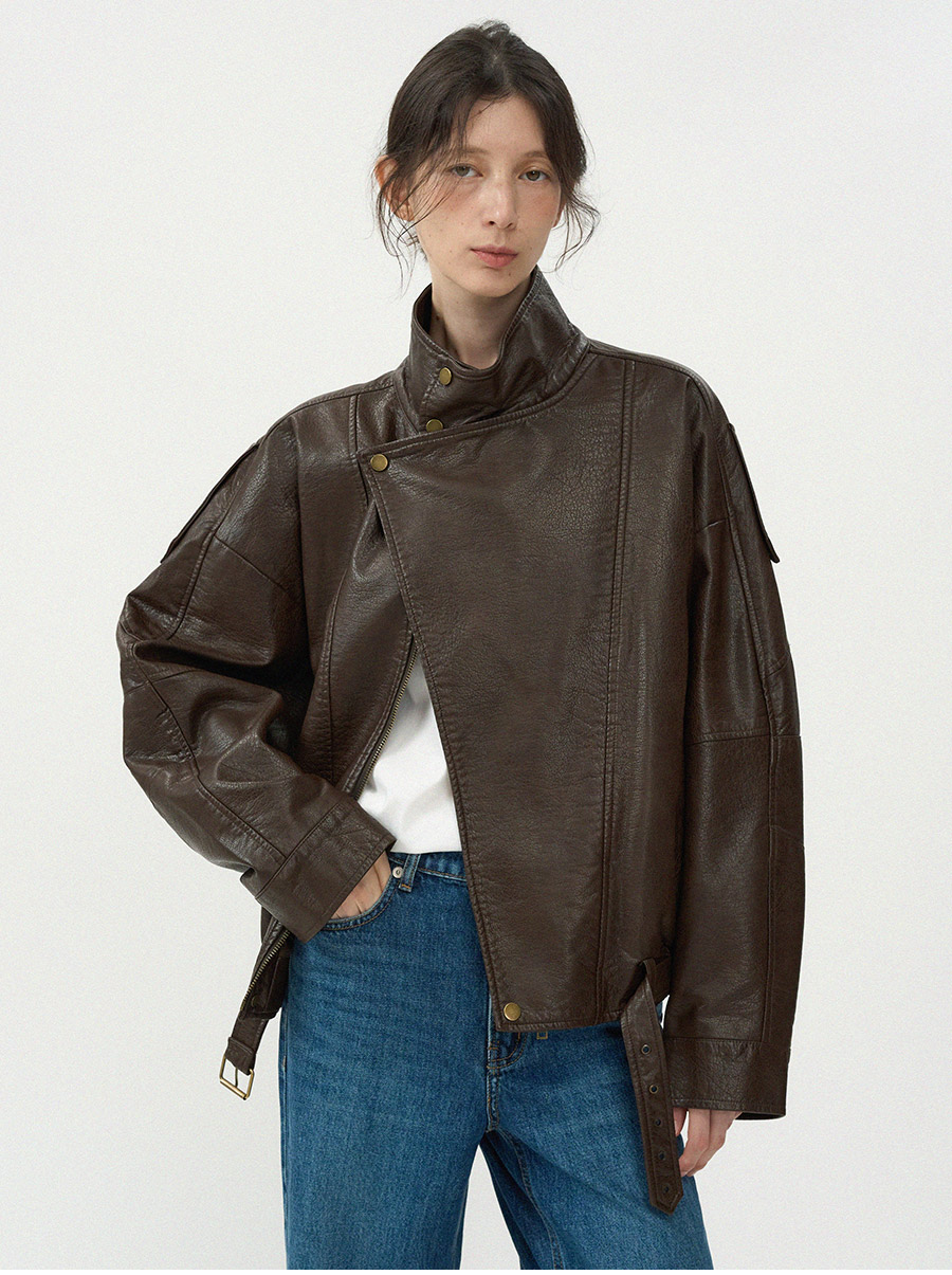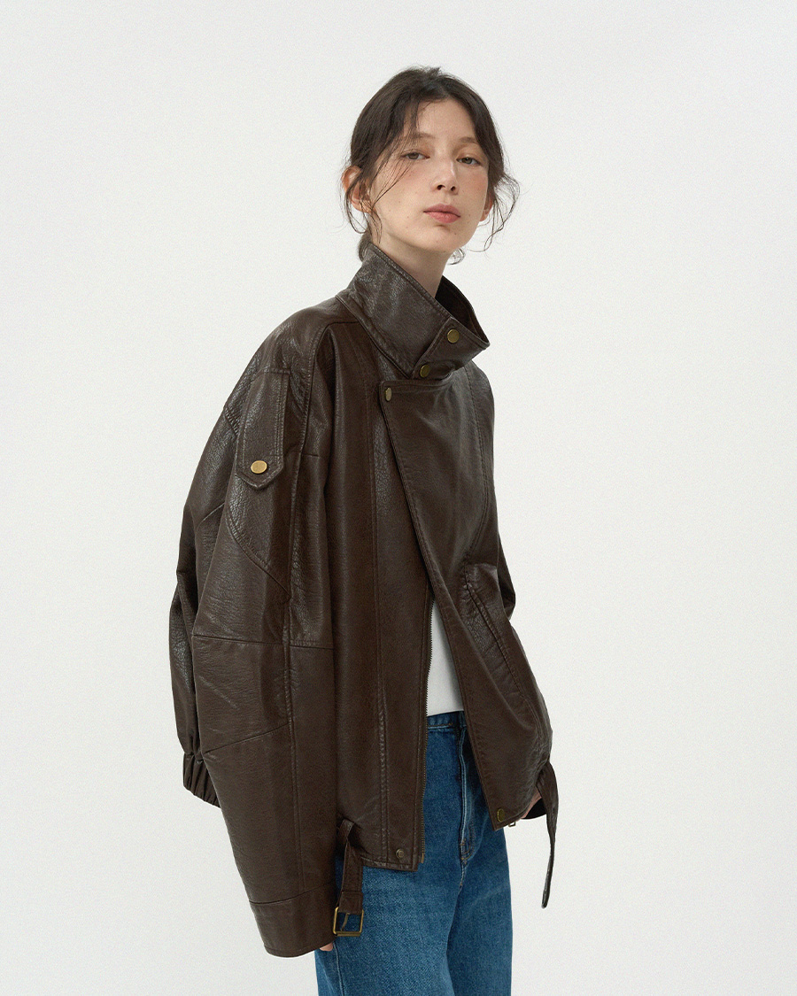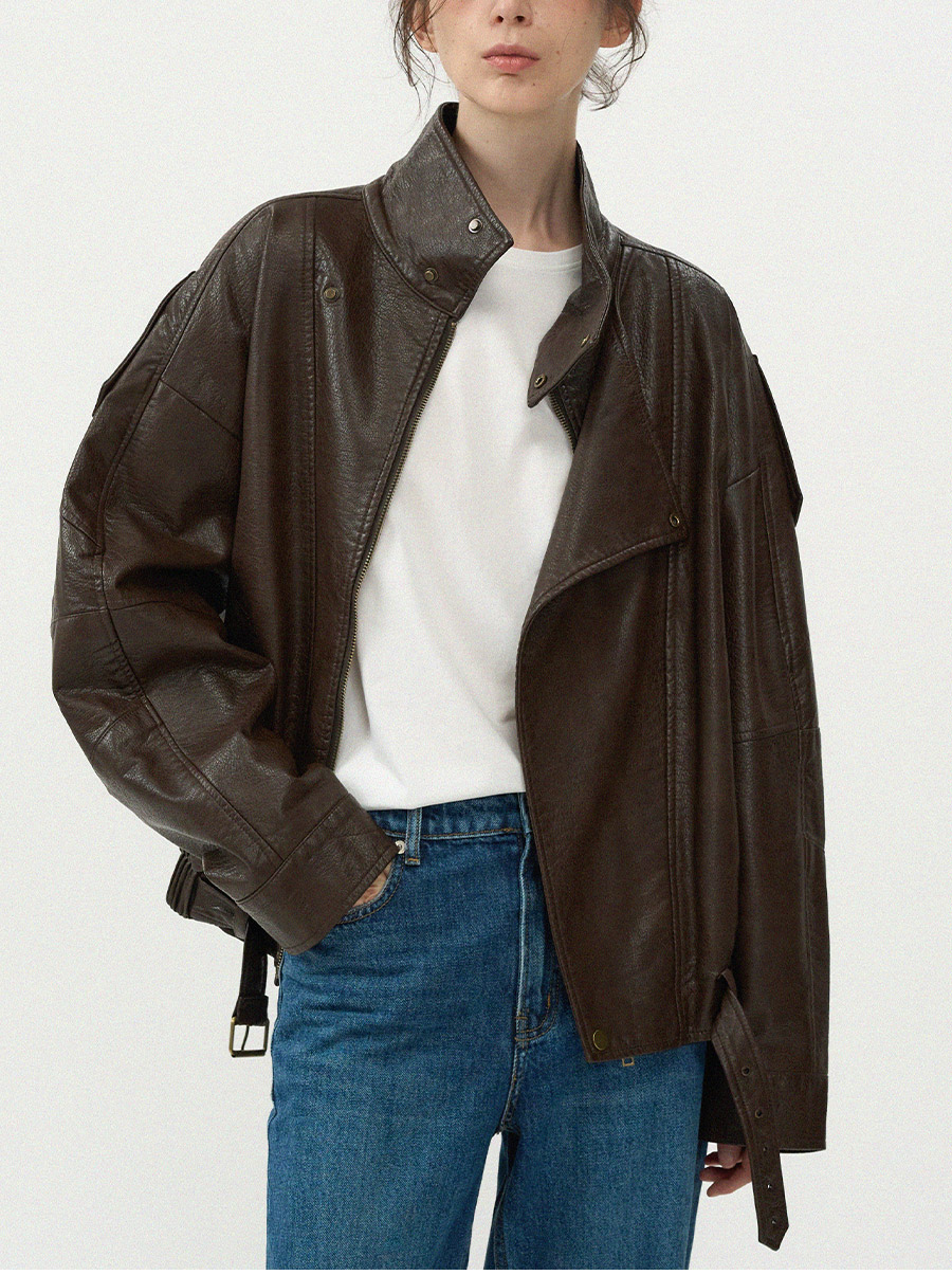 - 고급스러운 가죽 질감이 돋보이는 클래식 라이더 블루종 입니다