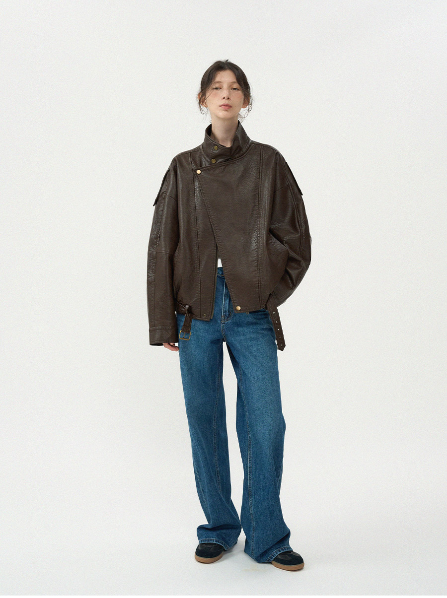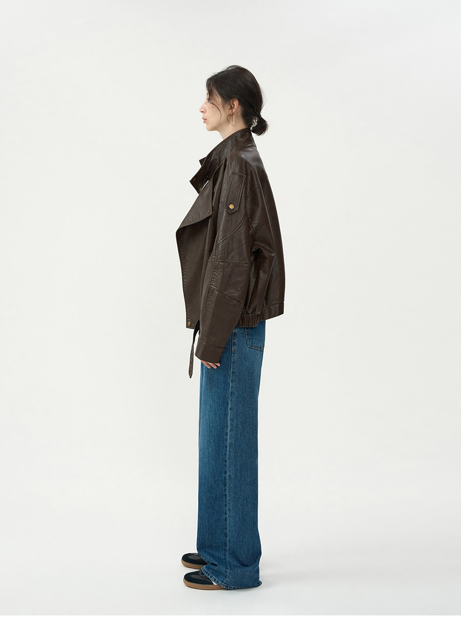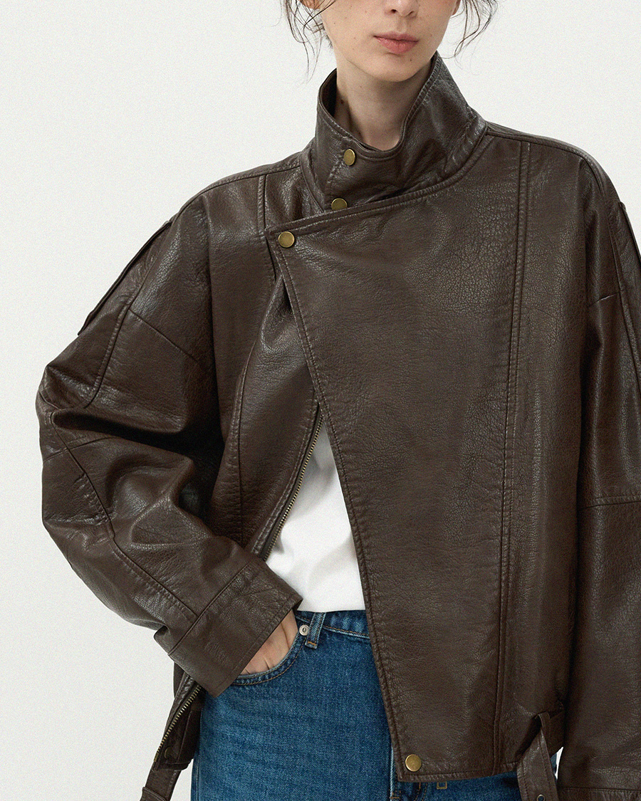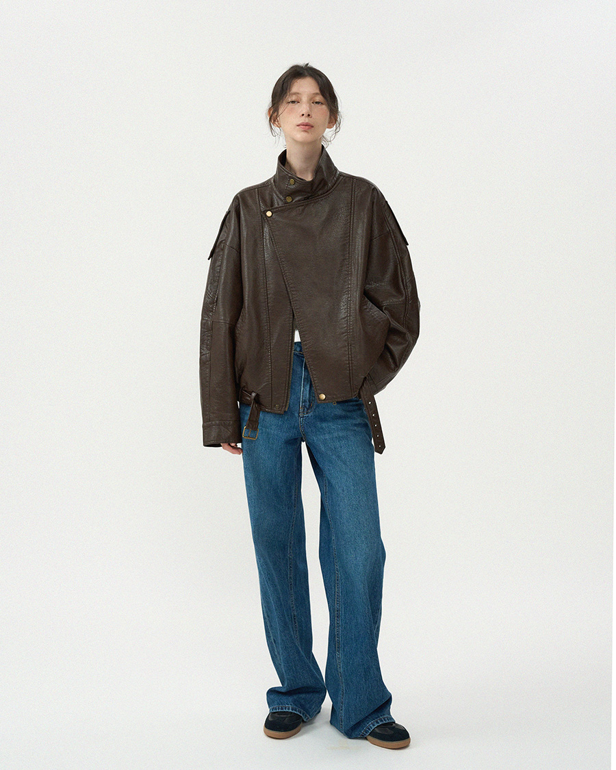 - 고급스러운 가죽 질감이 돋보이는 클래식 라이더 블루종 입니다