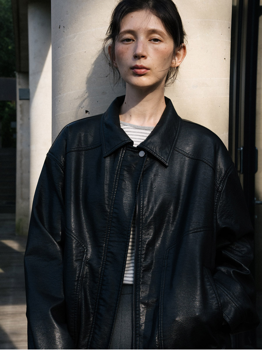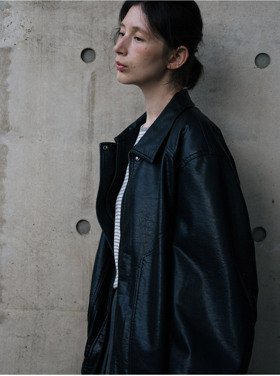- 앞으로 살짝 떨어지는 어깨선과 루즈하고 여유 있는 핏으로 착용시 멋스럽게 떨어지는 라인을 보여줍니다