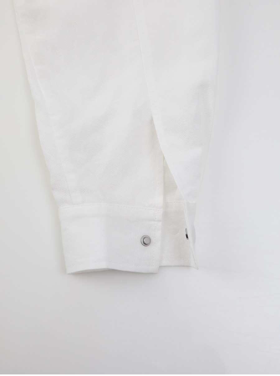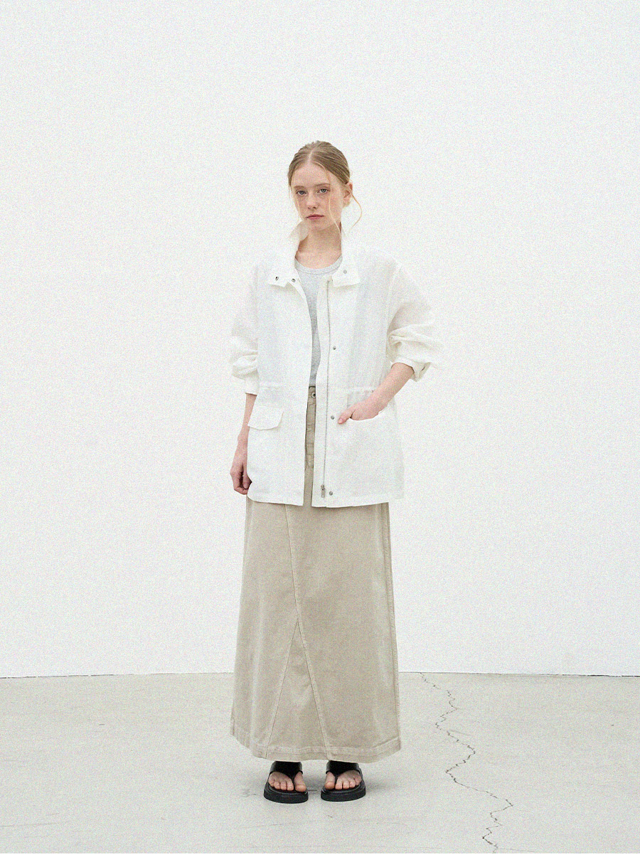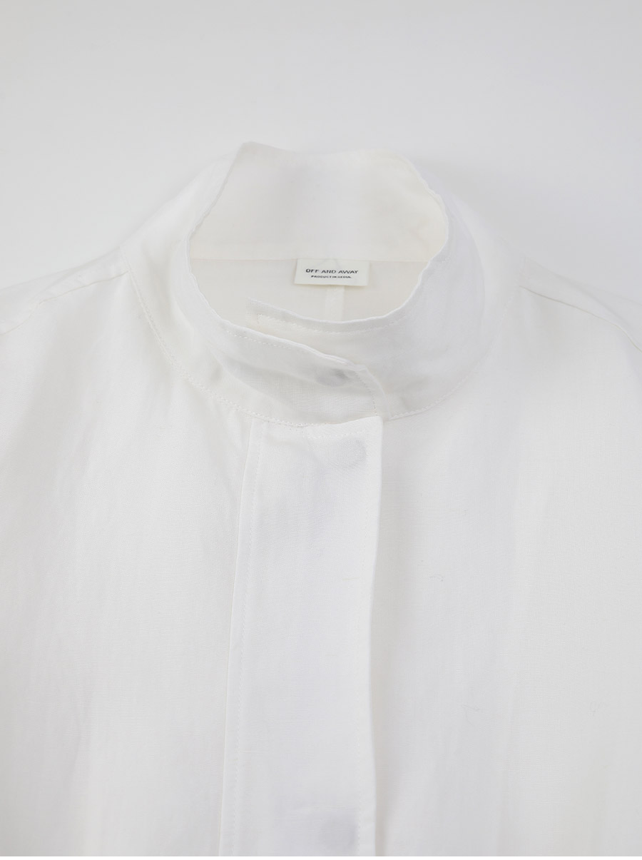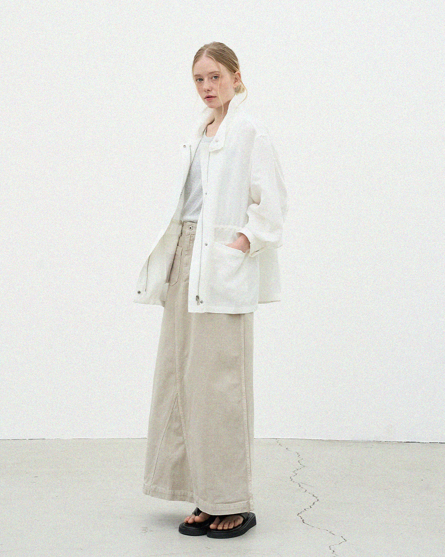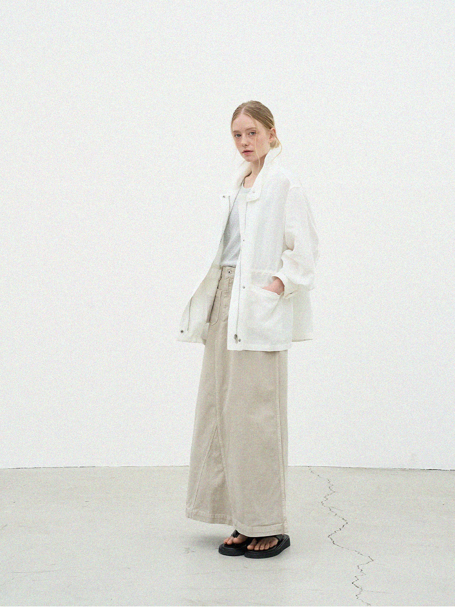 - 목선을 따라 자연스럽게 서는 스탠카라 디자인에 똑딱이 단추를 더해 깔끔한 실루엣을 보여줍니다