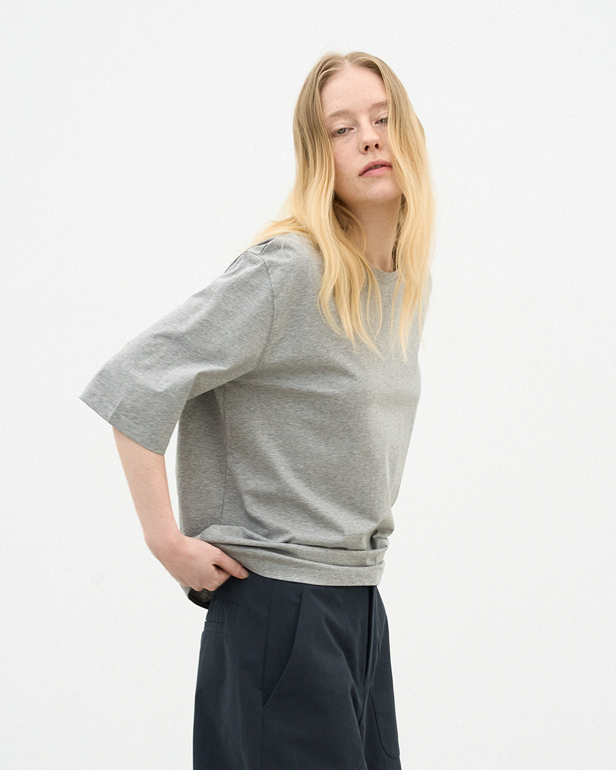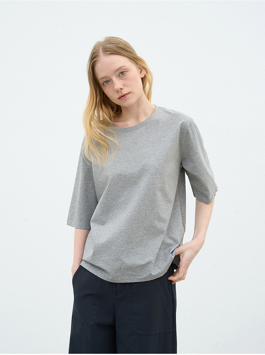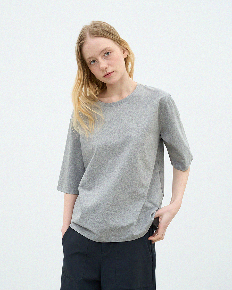 - 부담없이 착용하기 좋은 5부 소매로 팔 라인을 자연스럽게 연출해줍니다