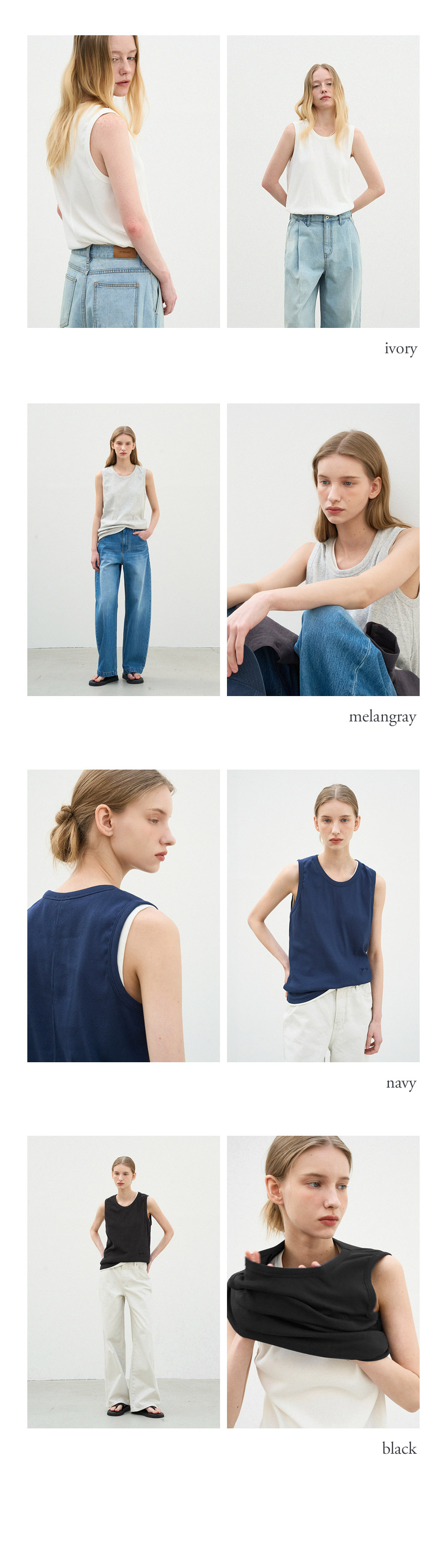 - 암홀과 넥 라인을 깔끔하게 마감하여 안정적인 핏을 완성합니다