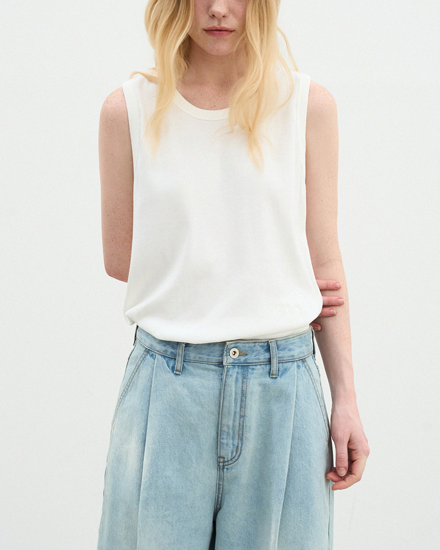- 간결한 실루엣에 포인트가 되는 자수를 더한 슬리브리스 탑 입니다
