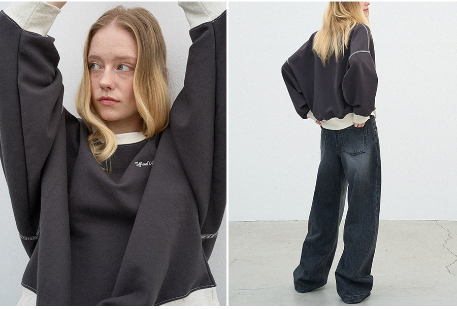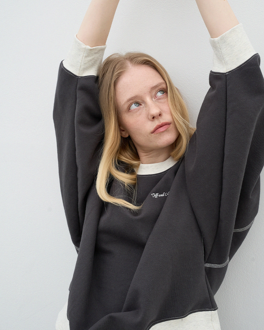 - 넓은 소매 라인으로 볼륨감이 돋보이는 스웻셔츠입니다