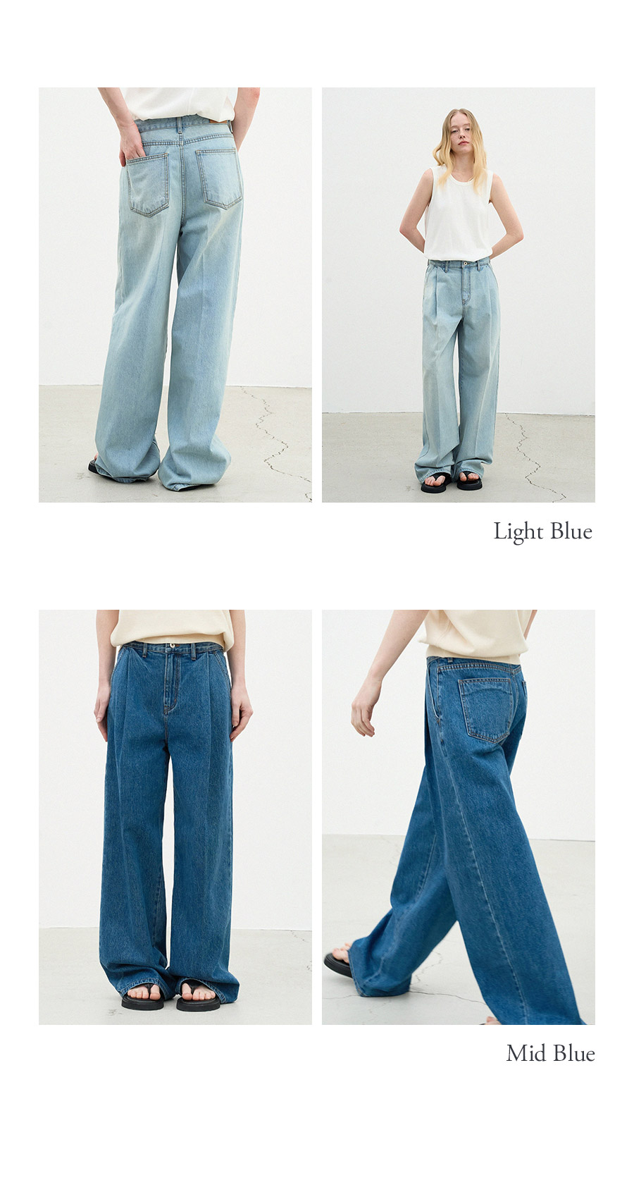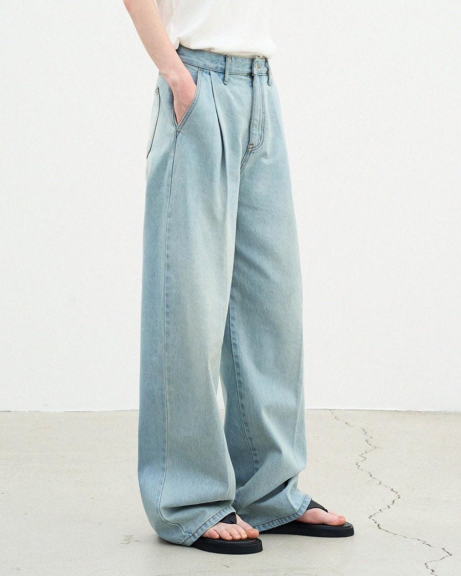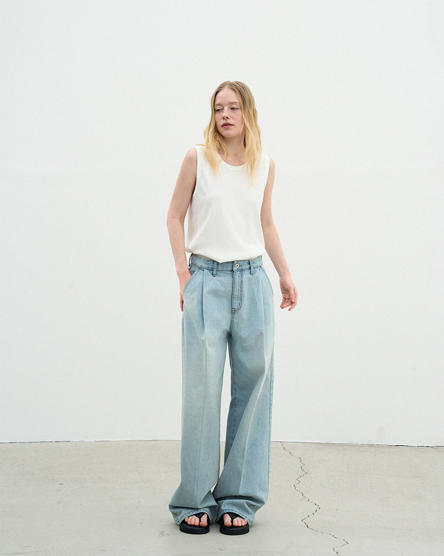 - 원 턱 디테일이 들어가 허리 아래로 자연스럽게 볼륨을 형성해 입체적인 실루엣을 연출합니다