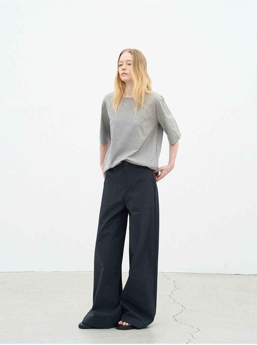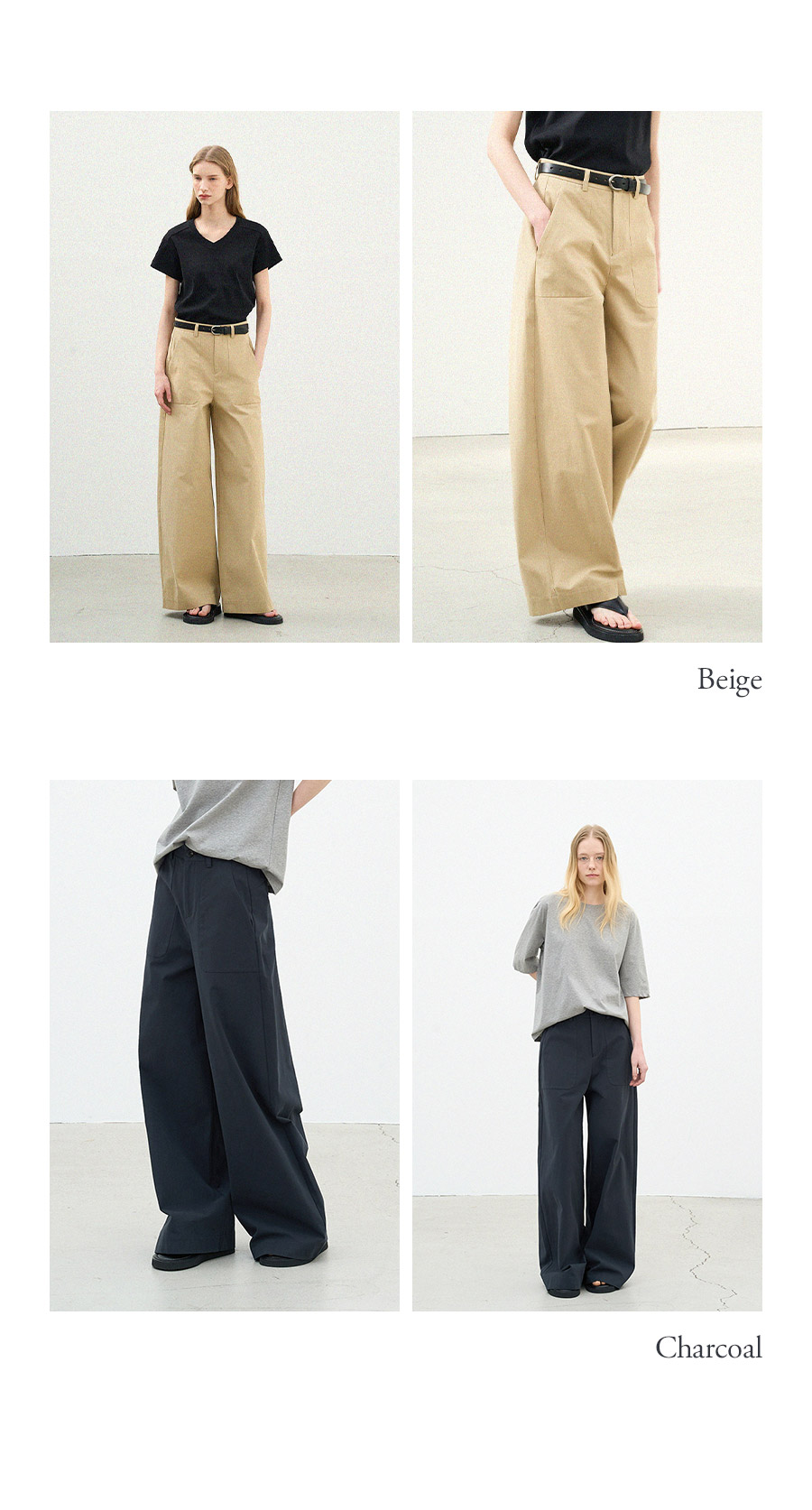 - 코튼,모달 혼용 소재로 부드러운 터치감과 편안한 착용감이 돋보이는 와이드 팬츠 입니다