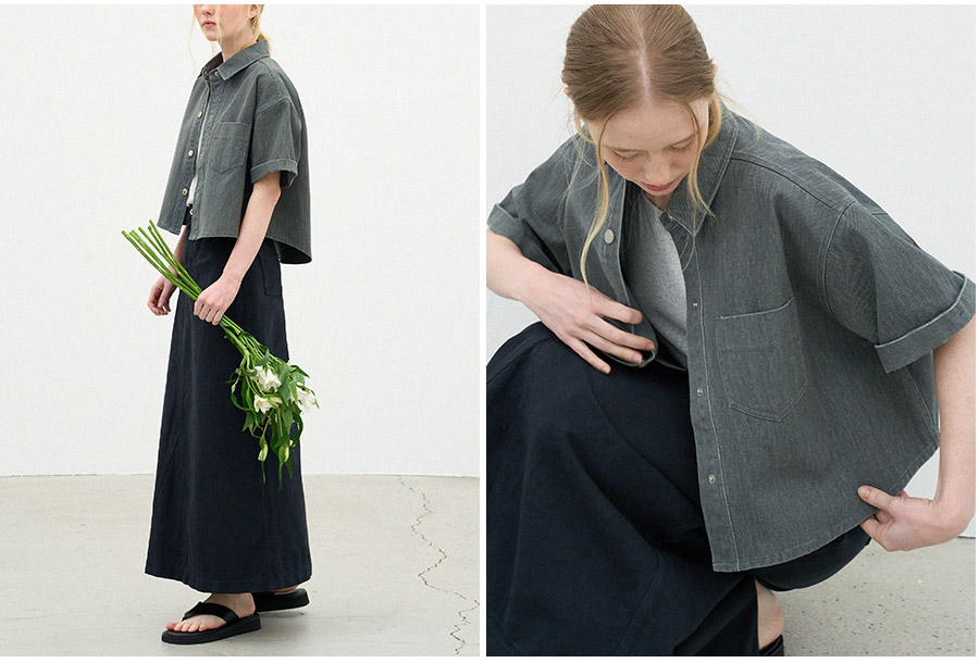 -소매는 롤업한 뒤 바텍 봉제로 고정하여 소매 형태가 흐트러지지 않아 깔끔한 착용감을 유지합니다