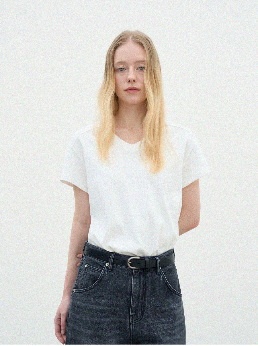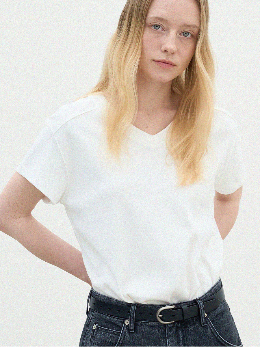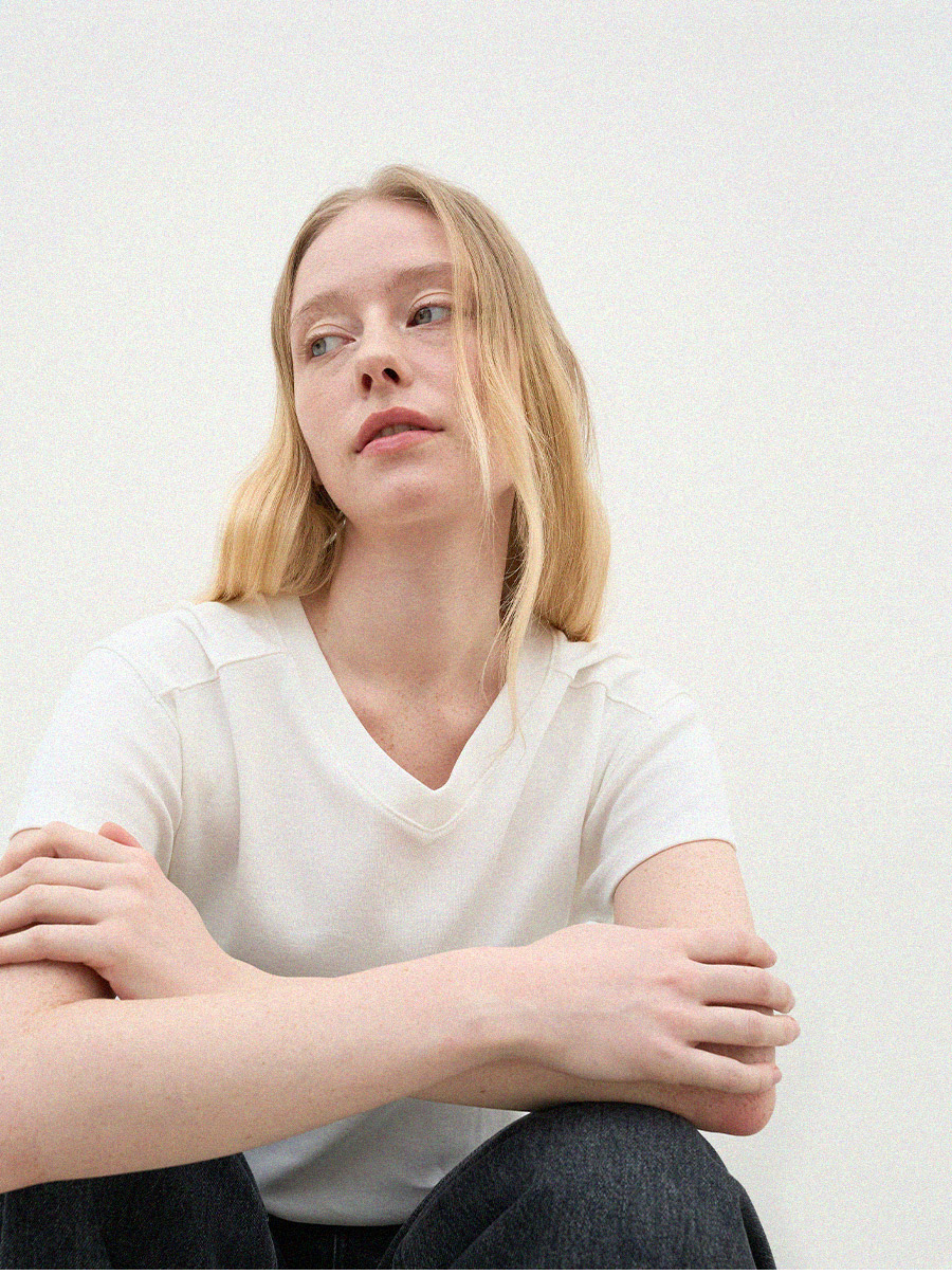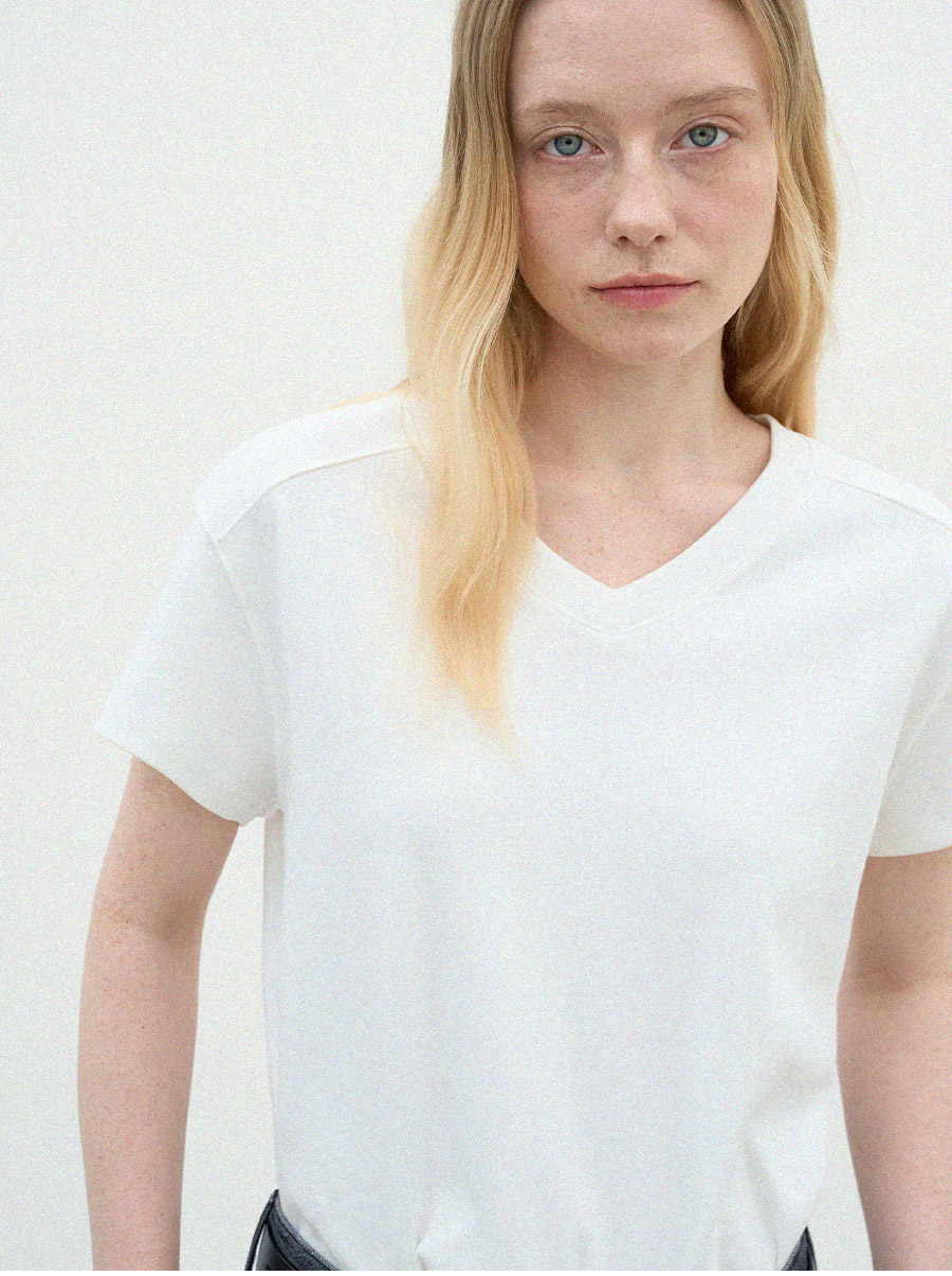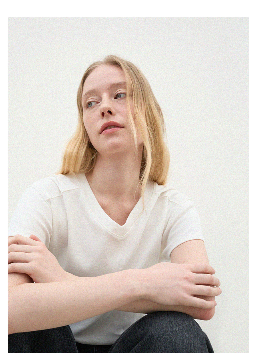 - 목선을 자연스럽게 살려주는 브이넥 라인으로 깔끔한 무드를 보여줍니다