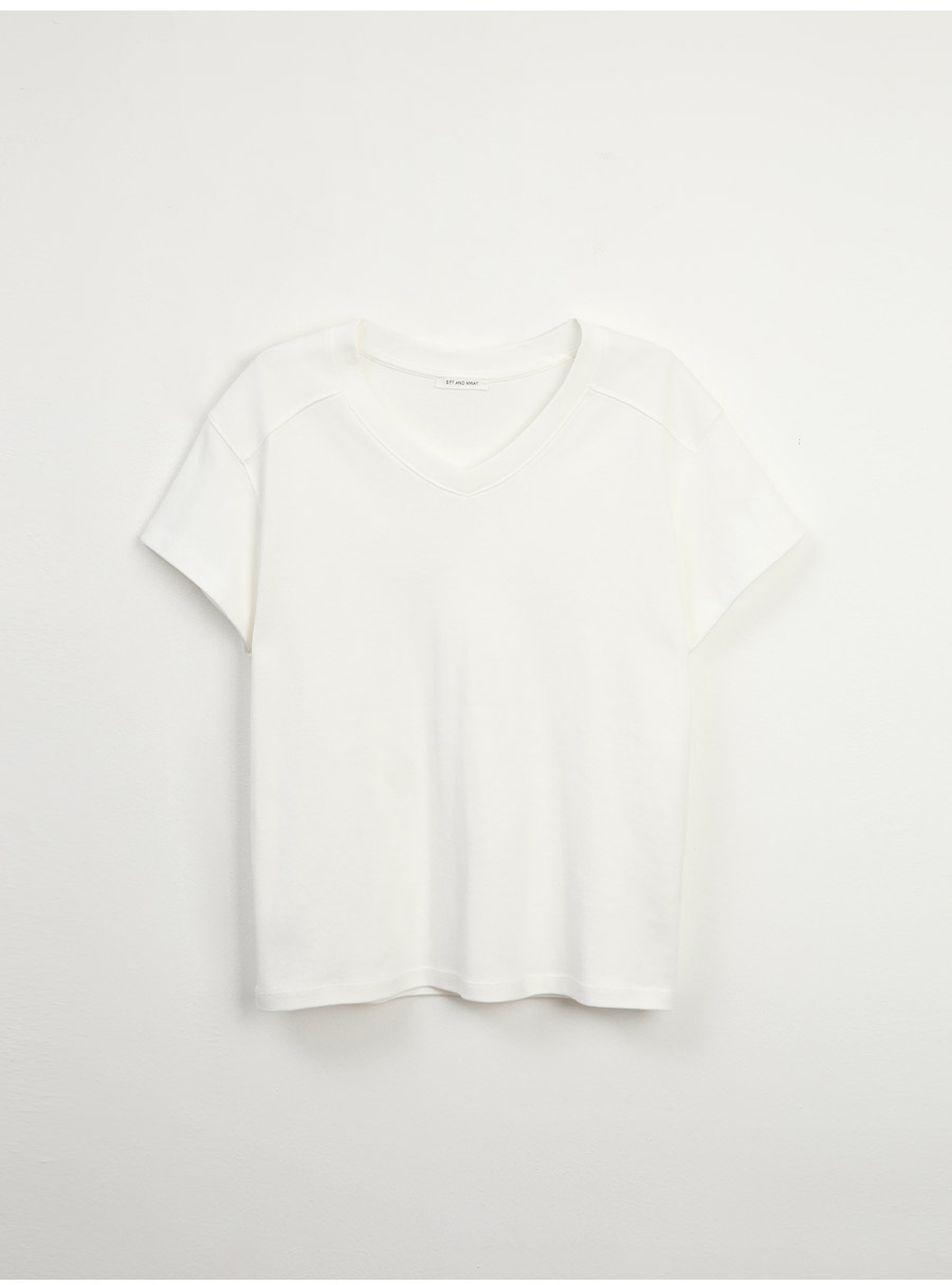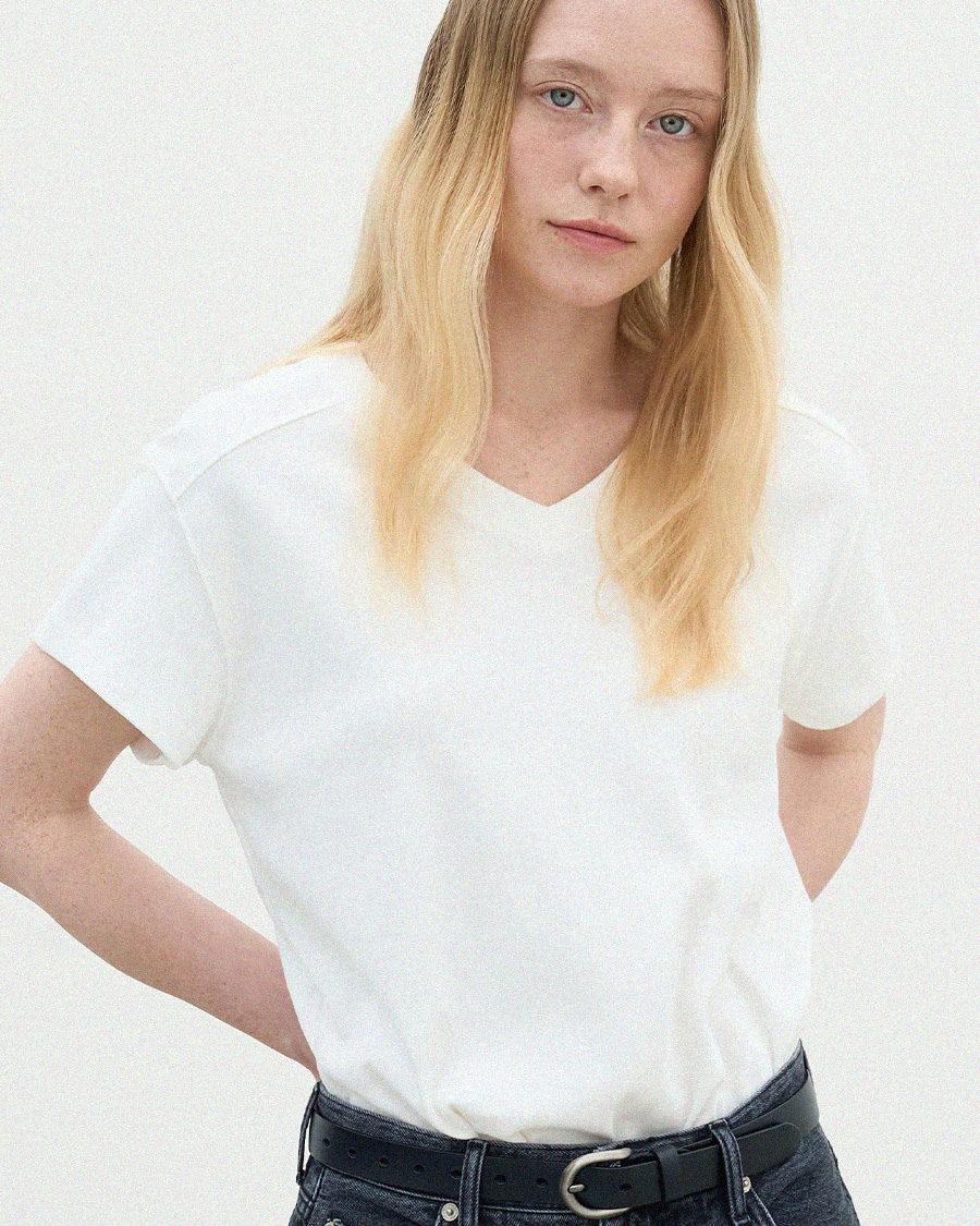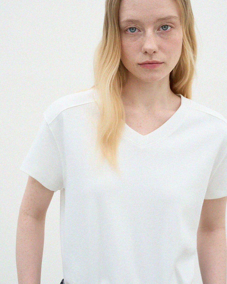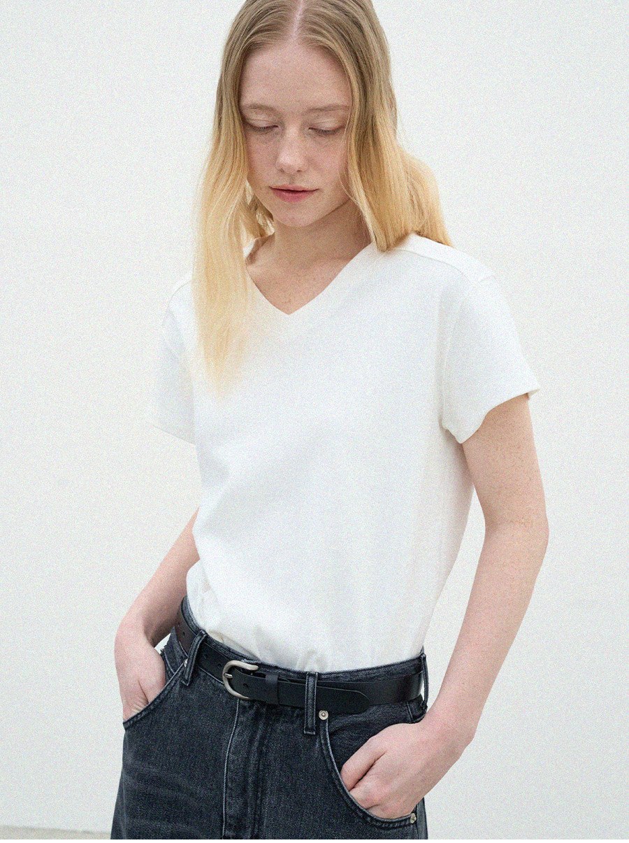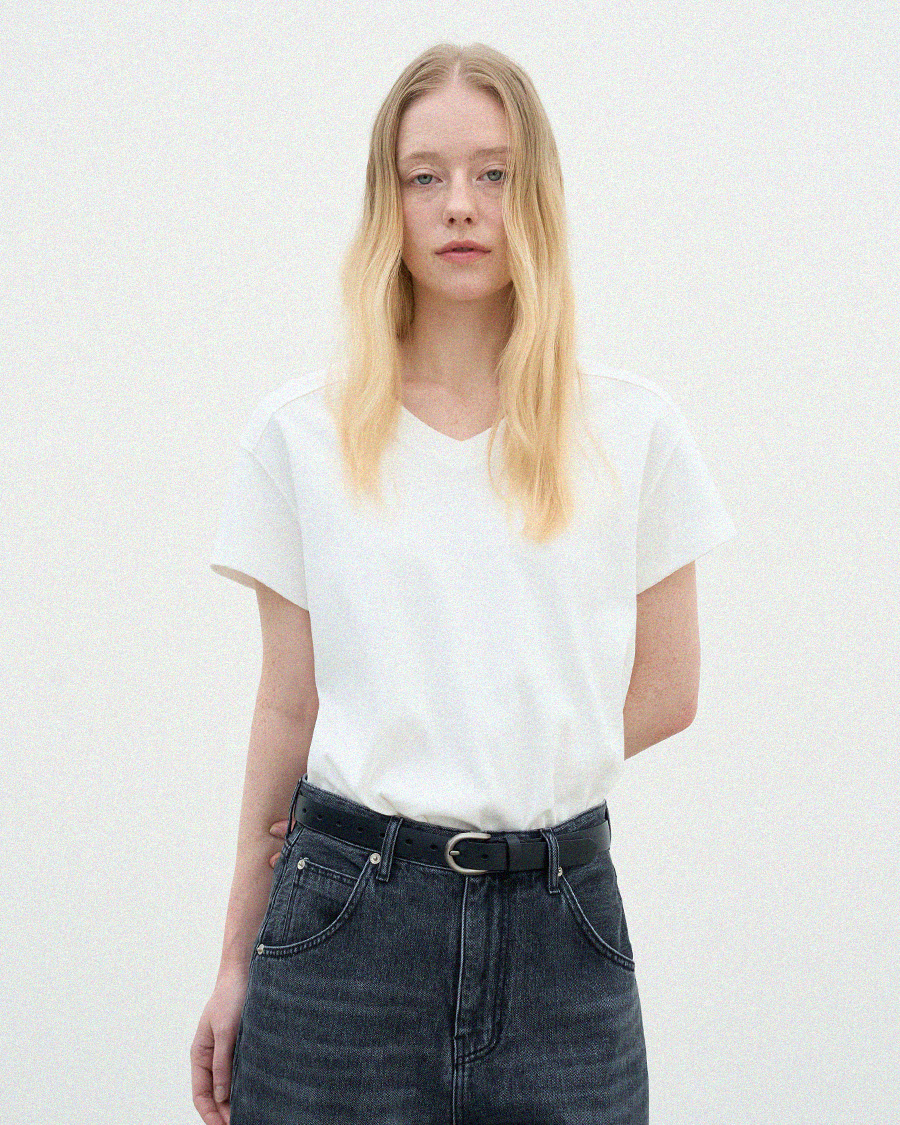 - 목선을 자연스럽게 살려주는 브이넥 라인으로 깔끔한 무드를 보여줍니다