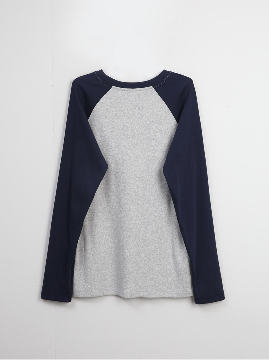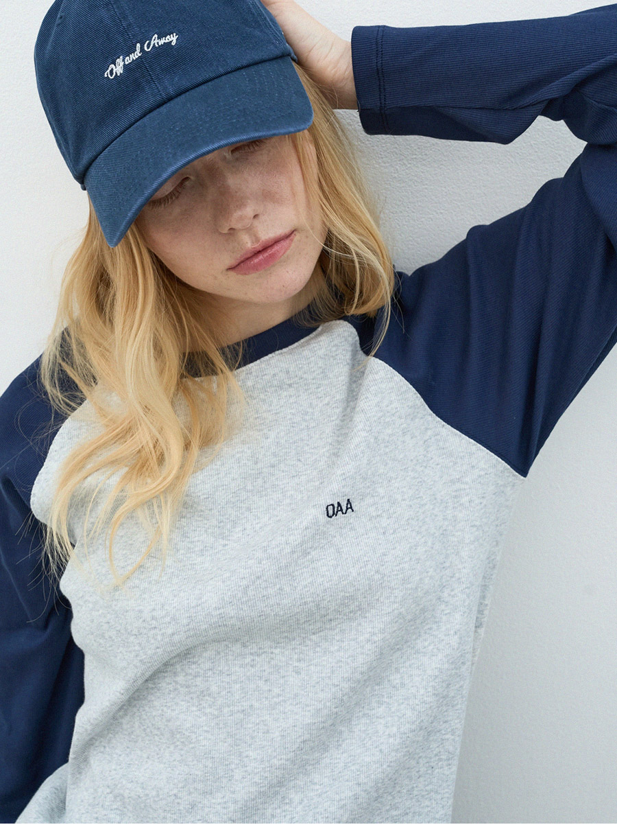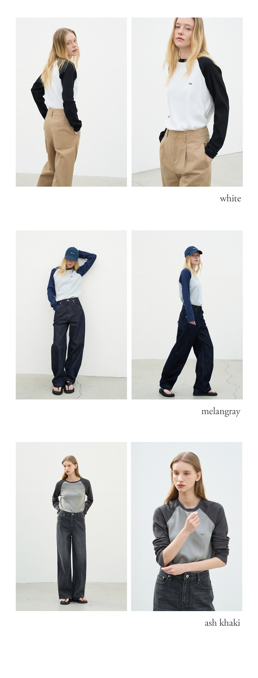 - 소매와 바디의 배색 조합으로 캐주얼하고 경쾌한 무드를 연출합니다