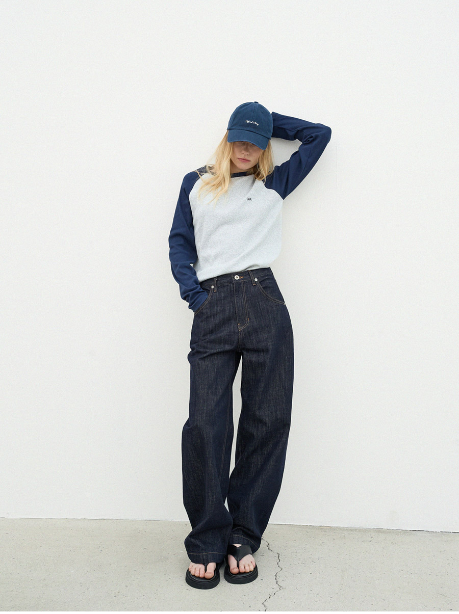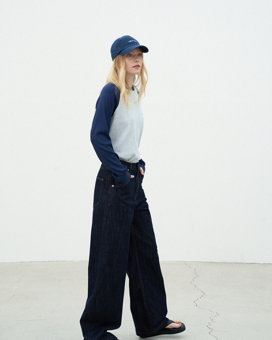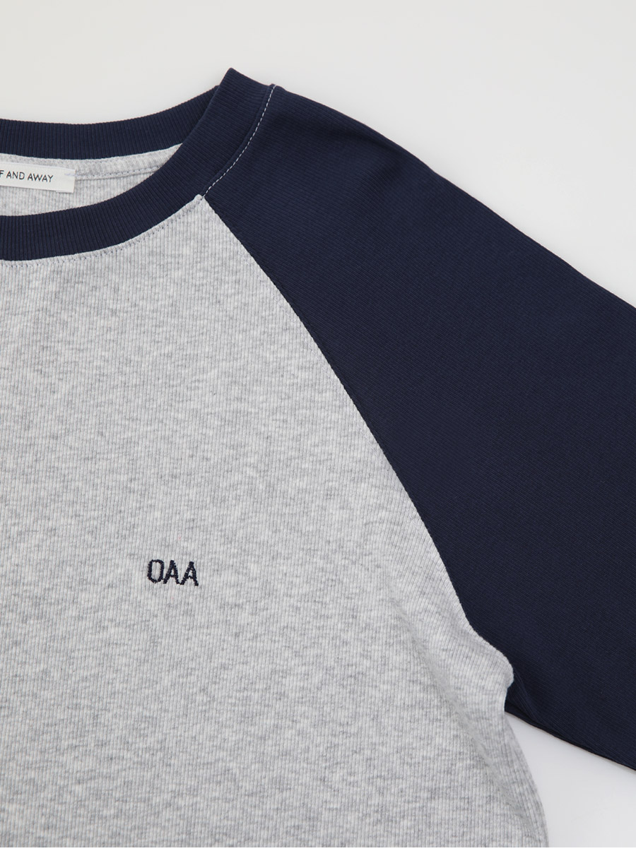 - 소매와 바디의 배색 조합으로 캐주얼하고 경쾌한 무드를 연출합니다