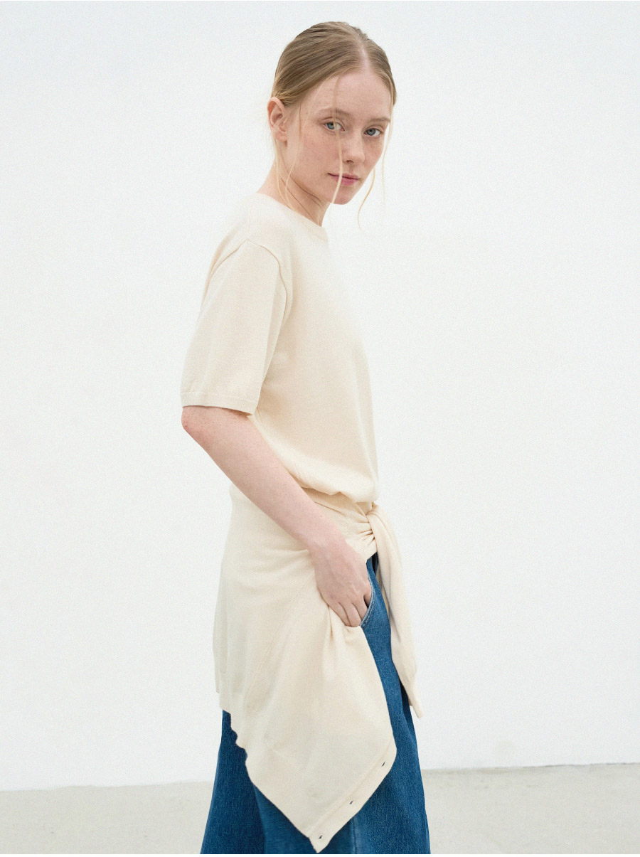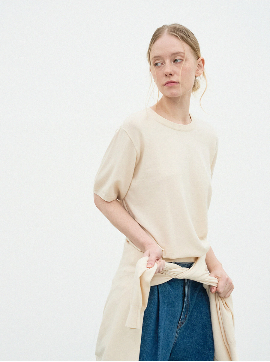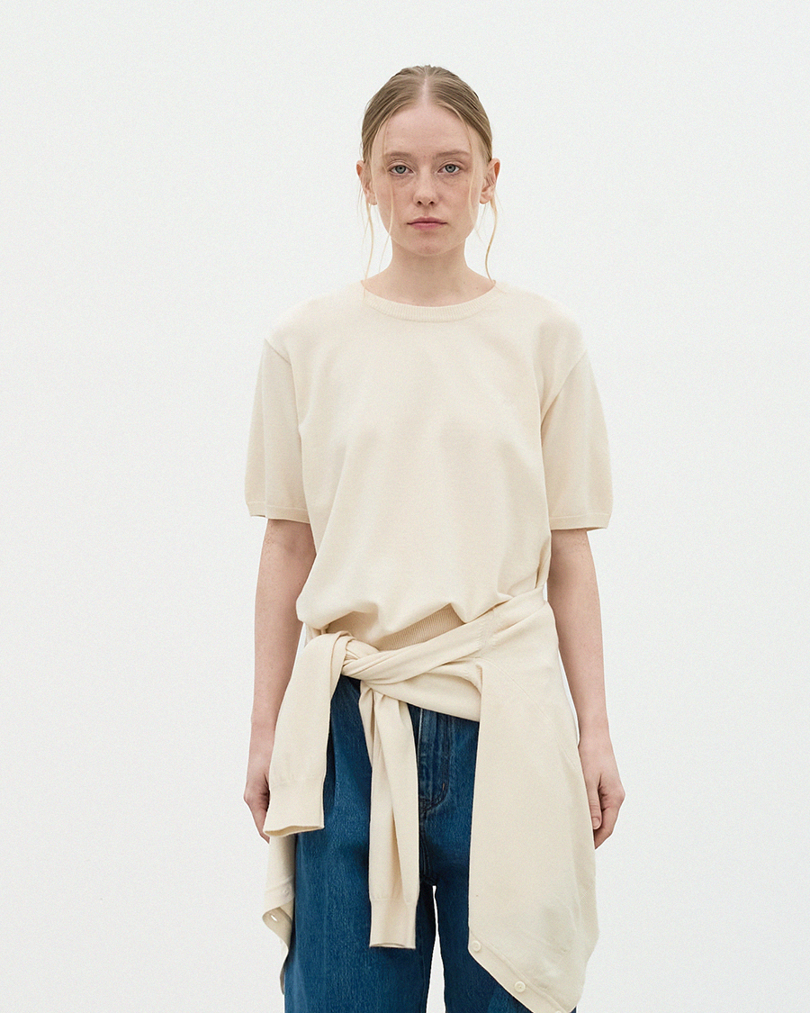 - 하프 슬리브 디자인으로 가볍고 세련된 무드를 완성합니다