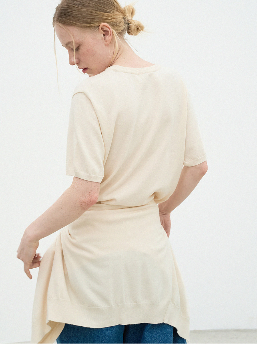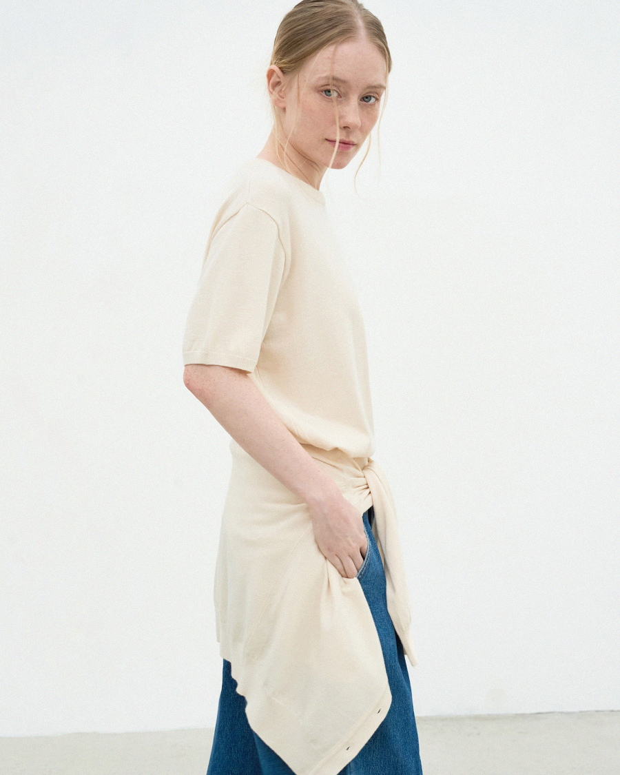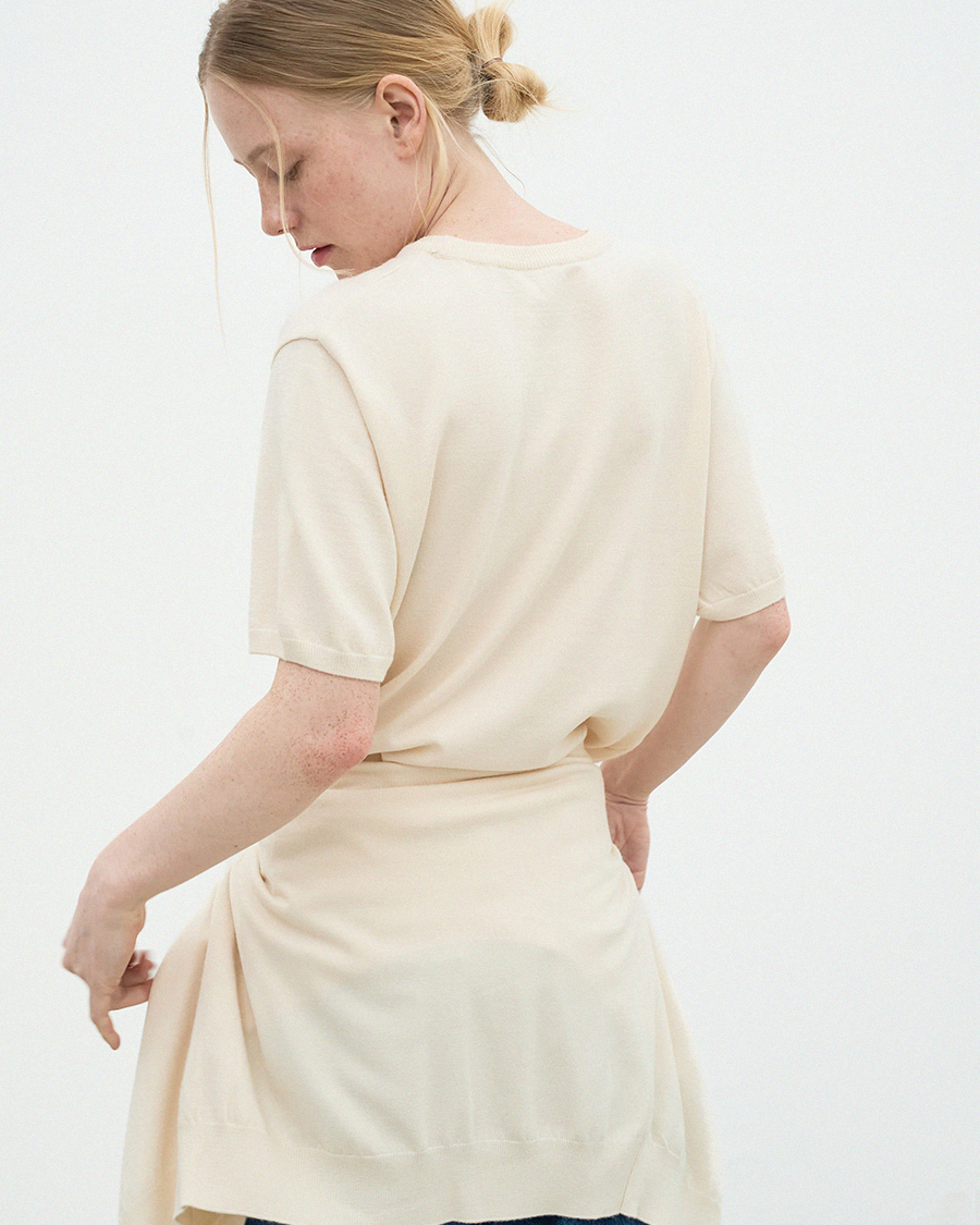- 하프 슬리브 디자인으로 가볍고 세련된 무드를 완성합니다