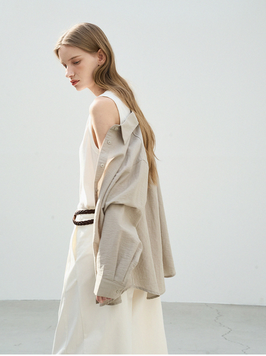 - 린넨의 내추럴한 결감과 레이온의 유연한 드레이프가 어우러져 흐르는듯 심플하게 떨어지는 실루엣을 연출합니다