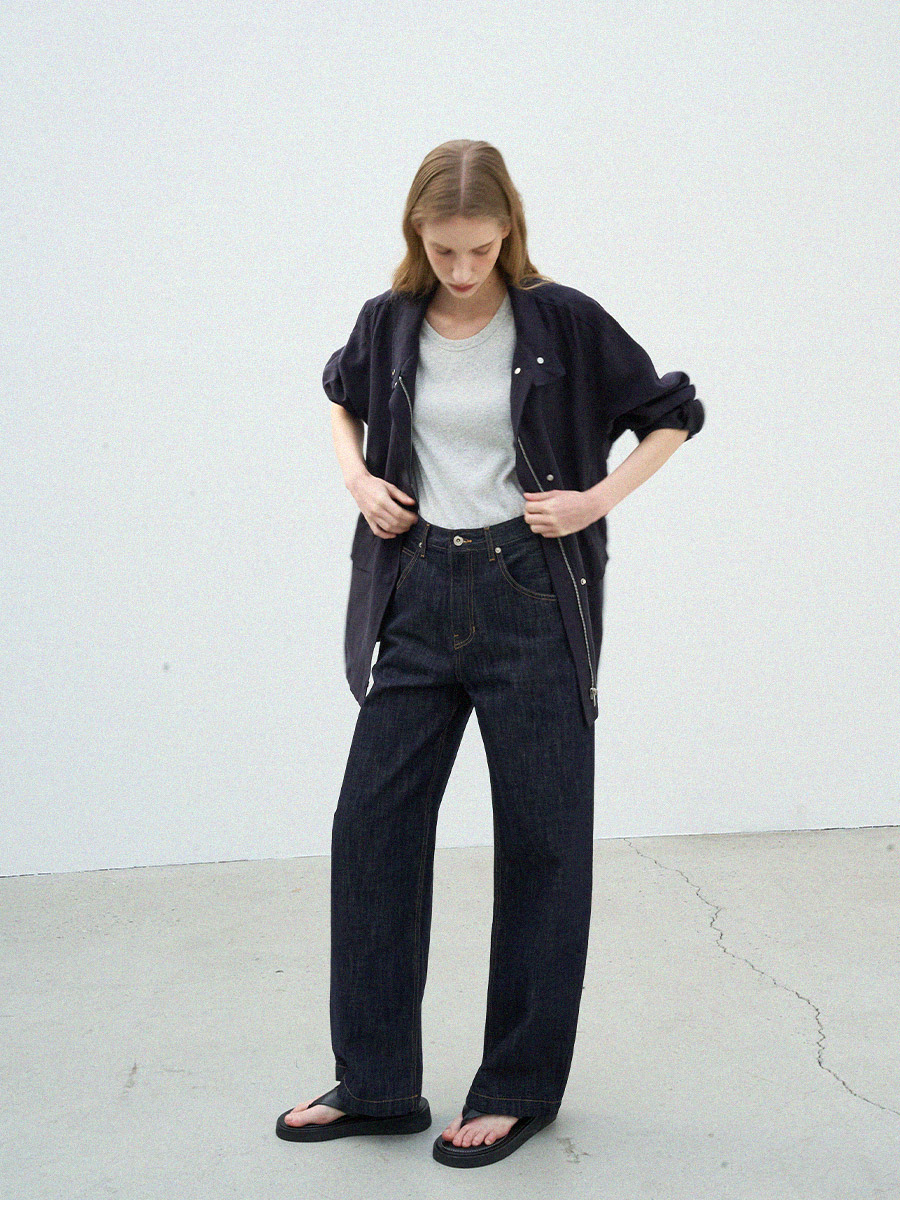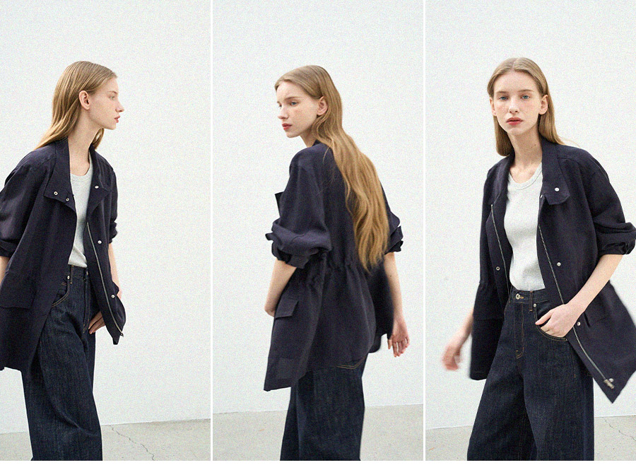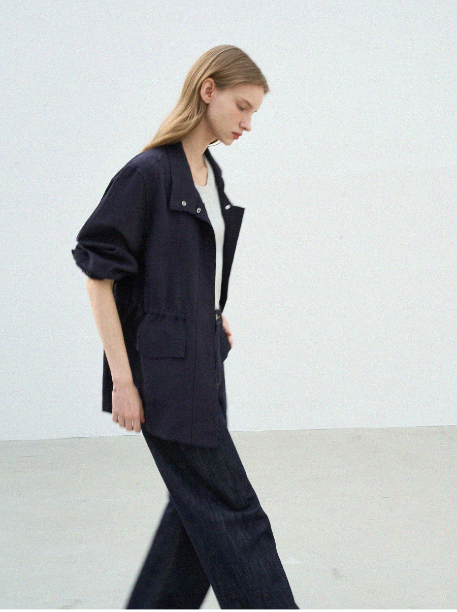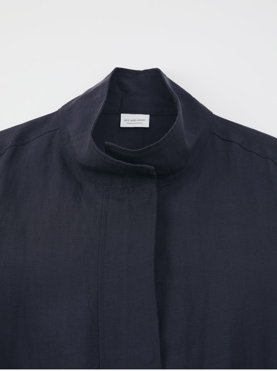 - 목선을 따라 자연스럽게 서는 스탠카라 디자인에 똑딱이 단추를 더해 깔끔한 실루엣을 보여줍니다