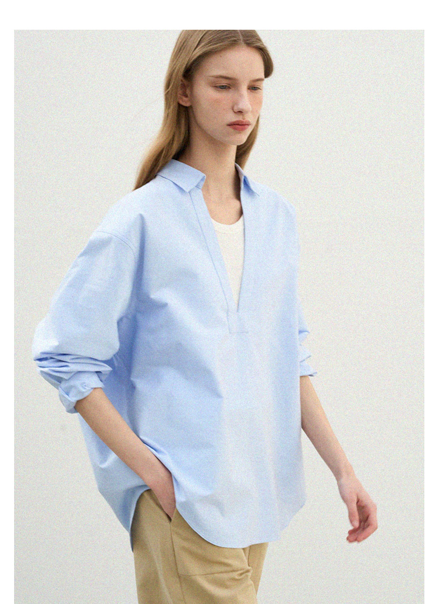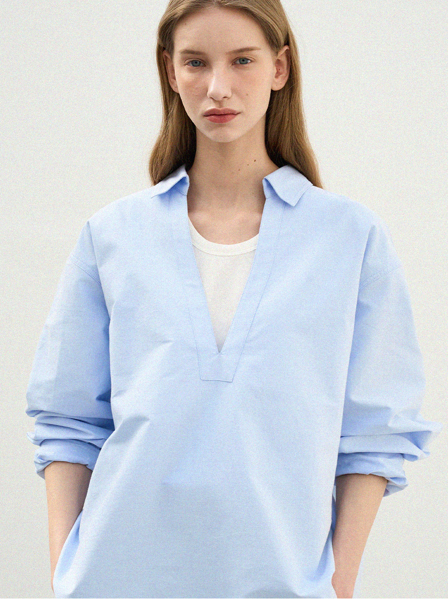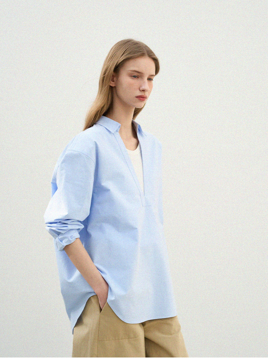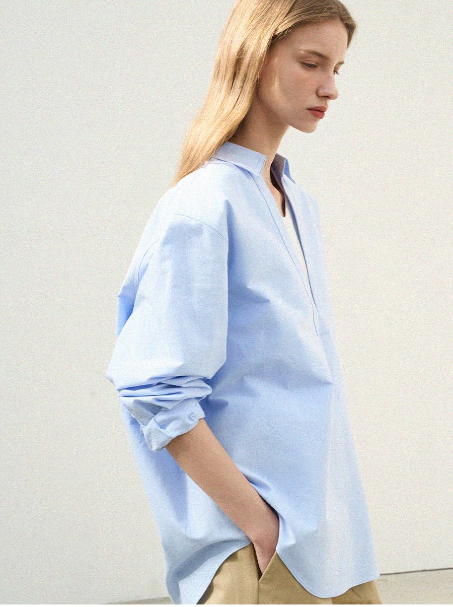 - 깊이감 있는 브이넥 디자인으로 이너 티셔츠와 레이어드하여 연출하기 좋은 셔츠입니다