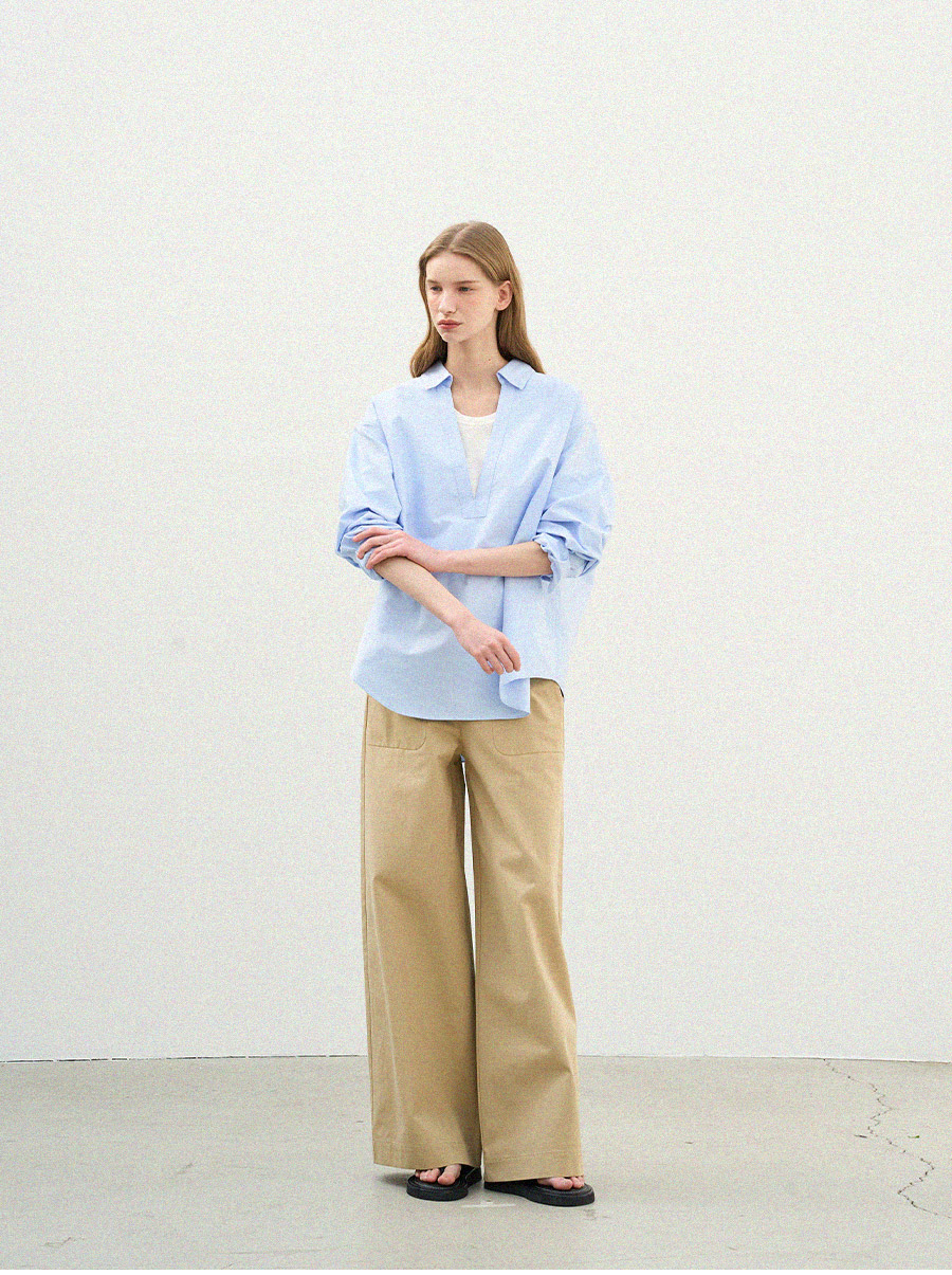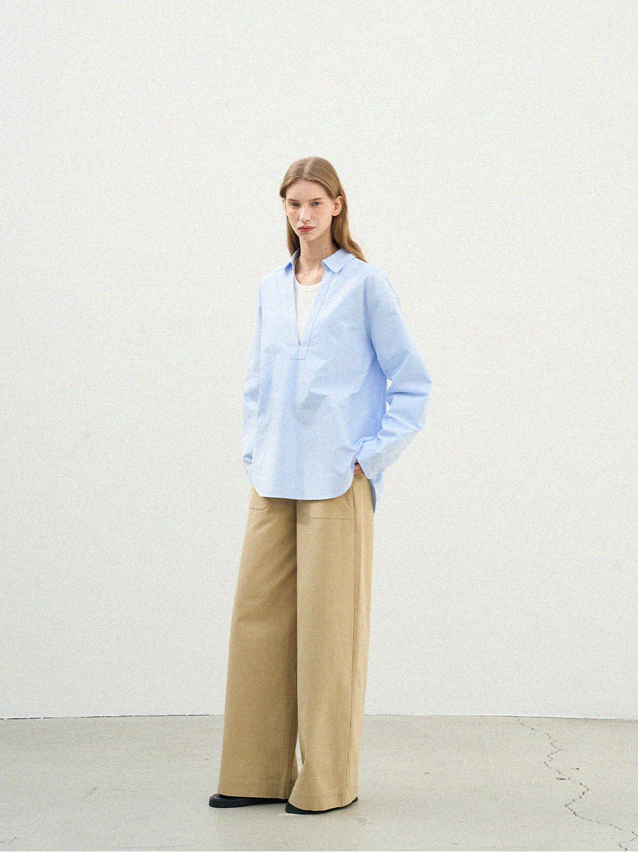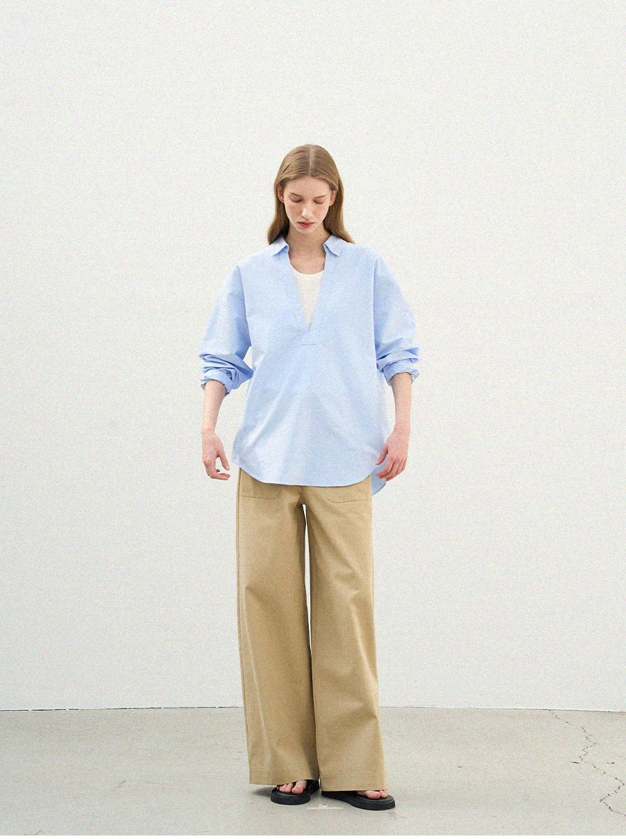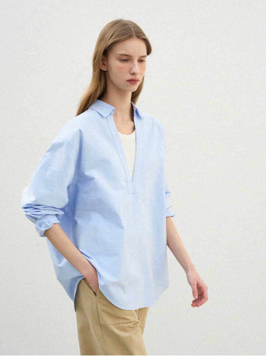 - 깊이감 있는 브이넥 디자인으로 이너 티셔츠와 레이어드하여 연출하기 좋은 셔츠입니다