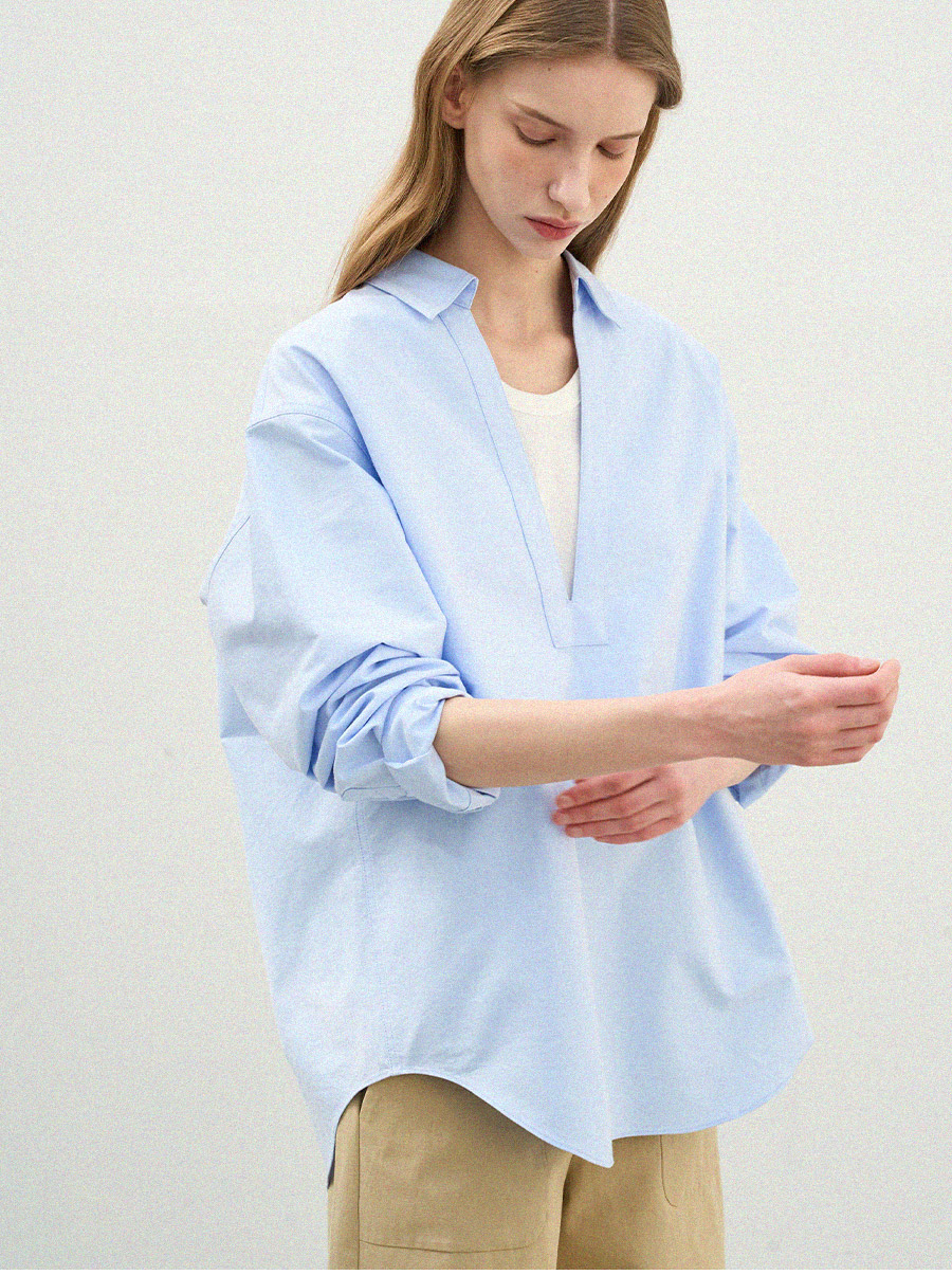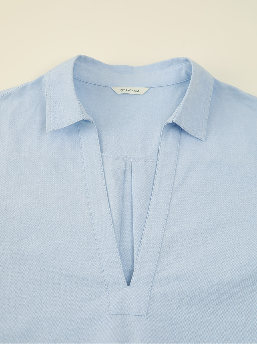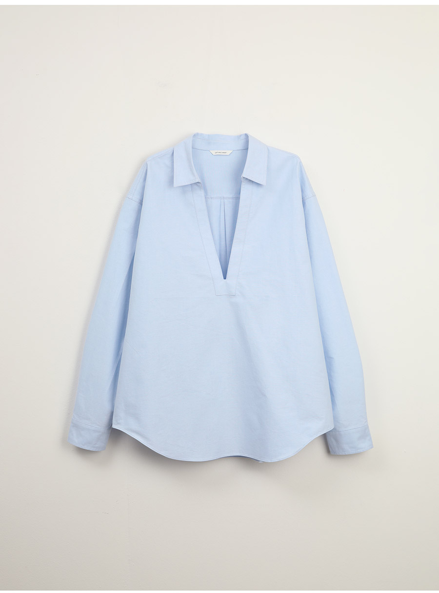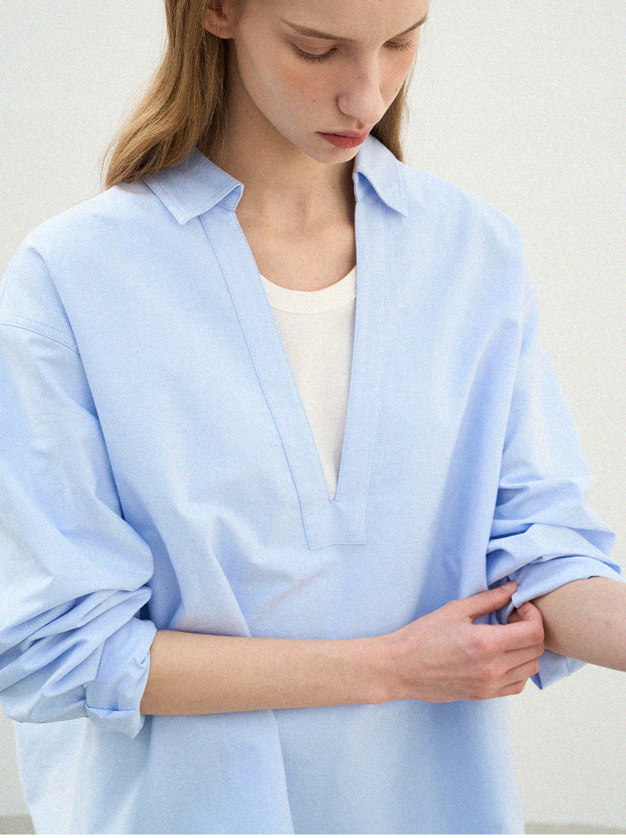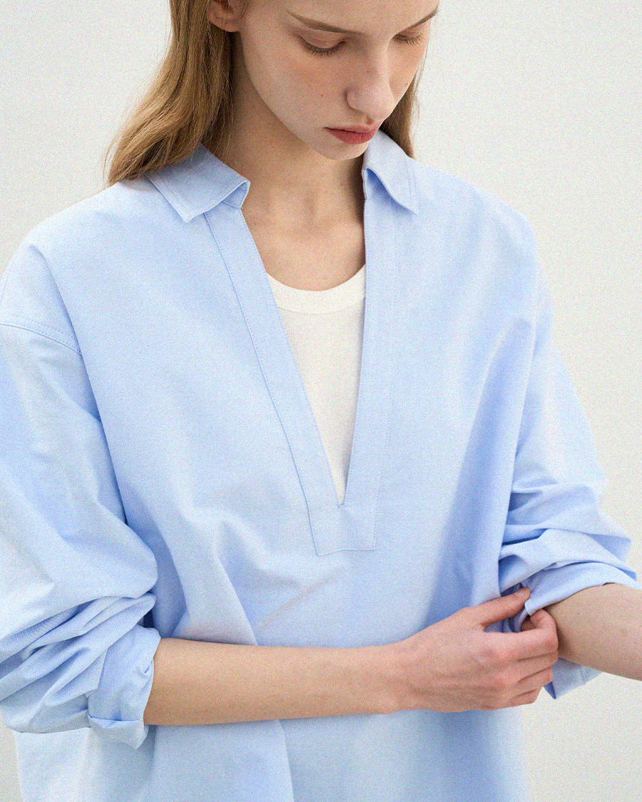 - 클래식한 옥스퍼드 원단에 브이넥 디자인을 더해 답답함 없이 세련된 인상을 보여줍니다