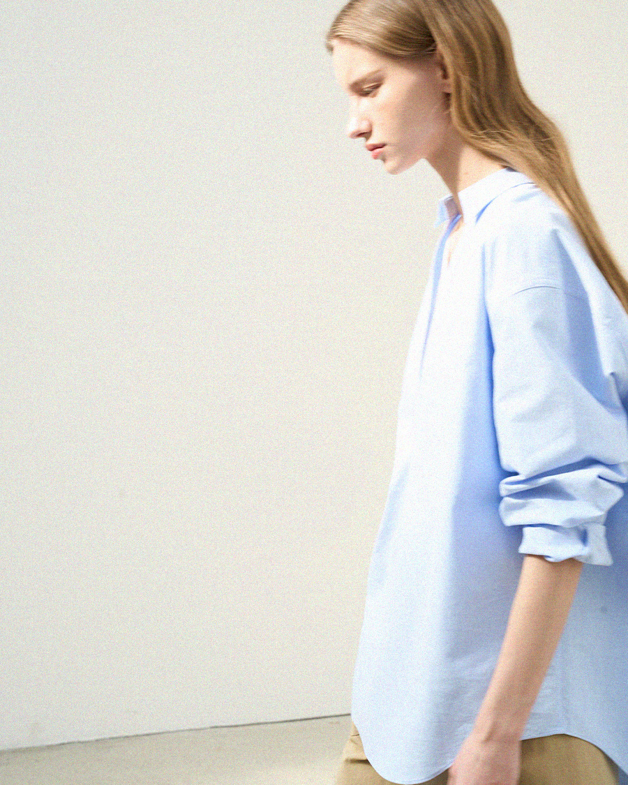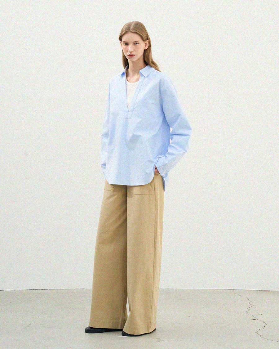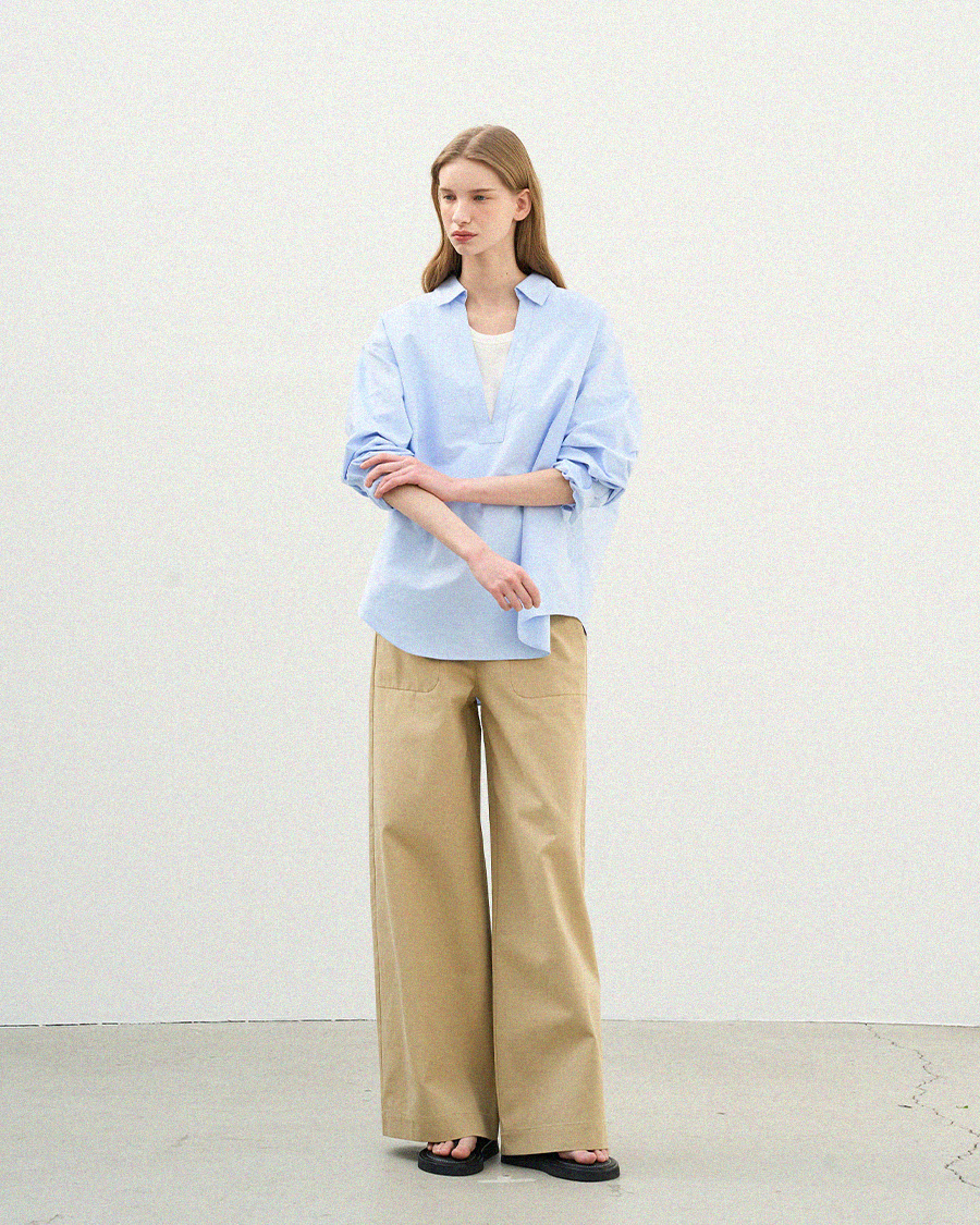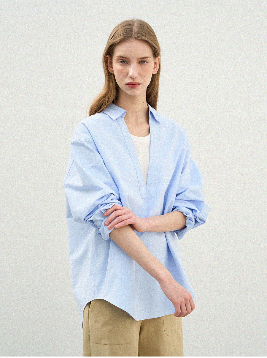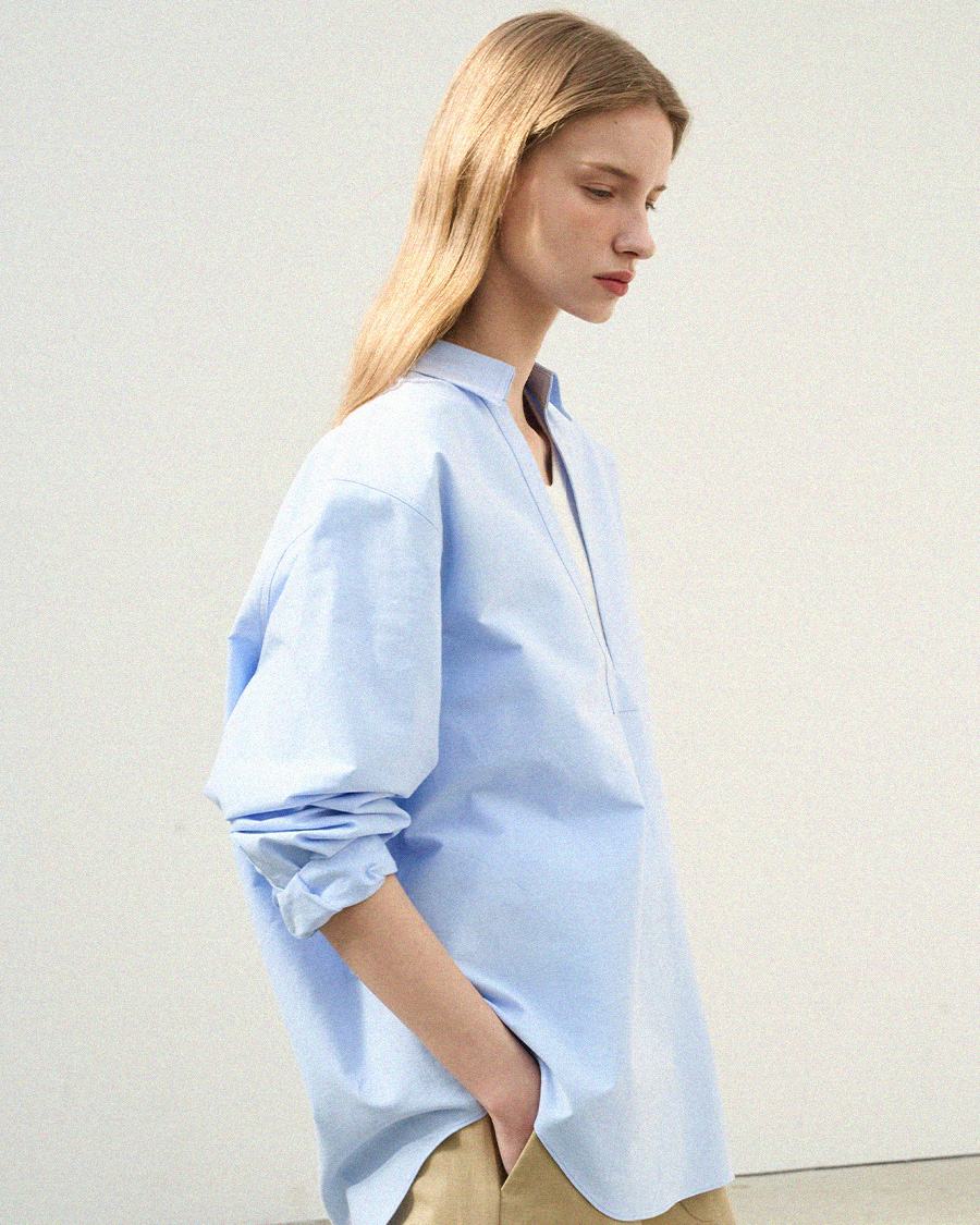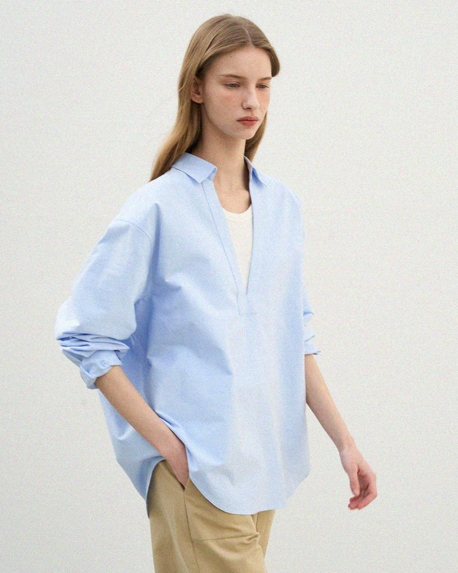 - 클래식한 옥스퍼드 원단에 브이넥 디자인을 더해 답답함 없이 세련된 인상을 보여줍니다