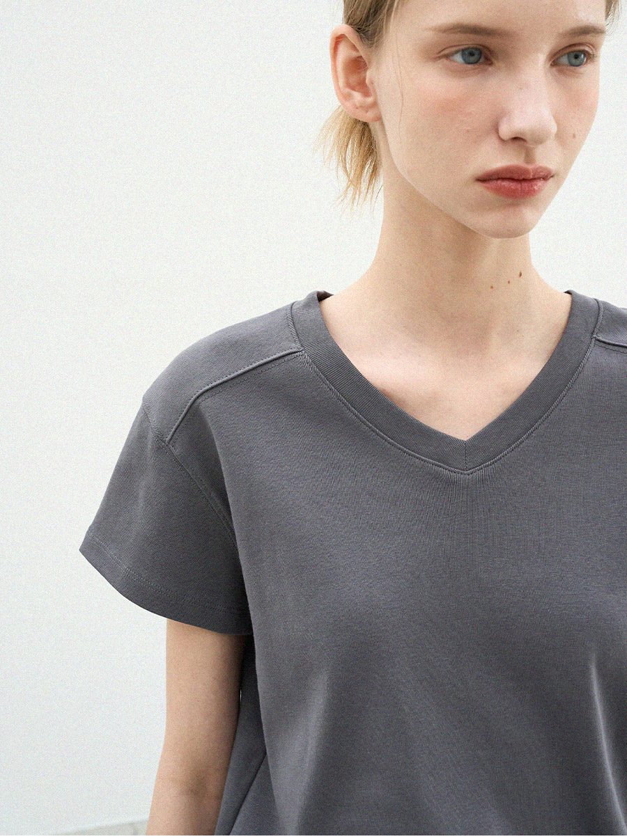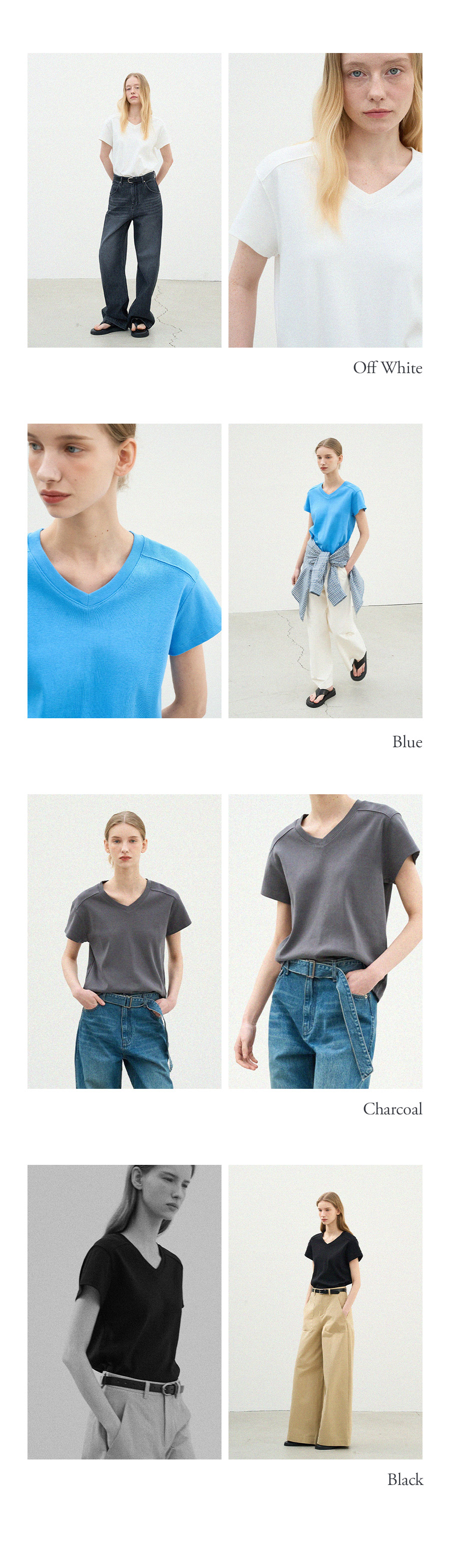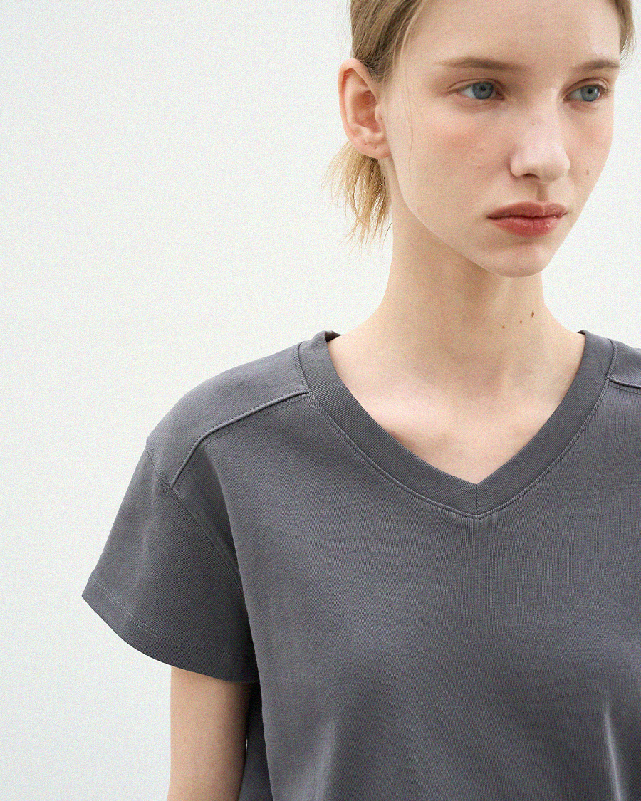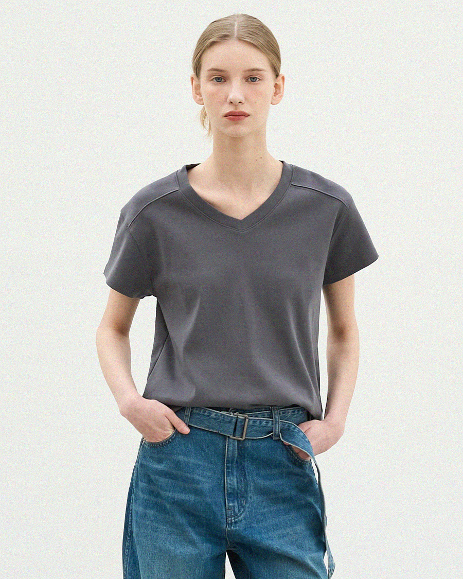 - 목선을 자연스럽게 살려주는 브이넥 라인으로 깔끔한 무드를 보여줍니다