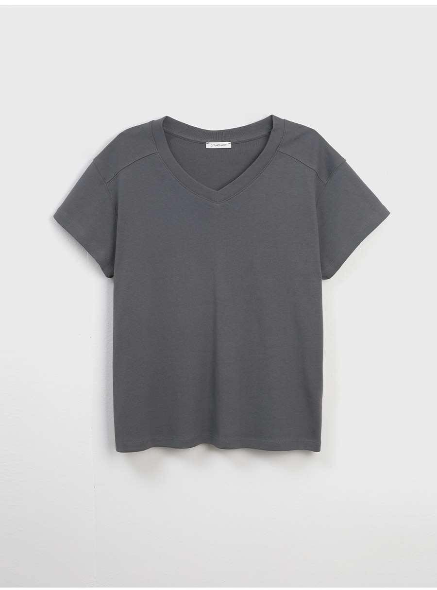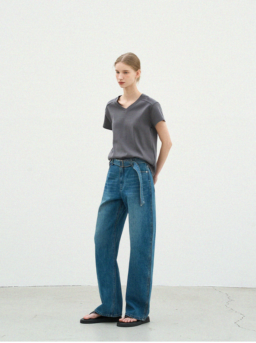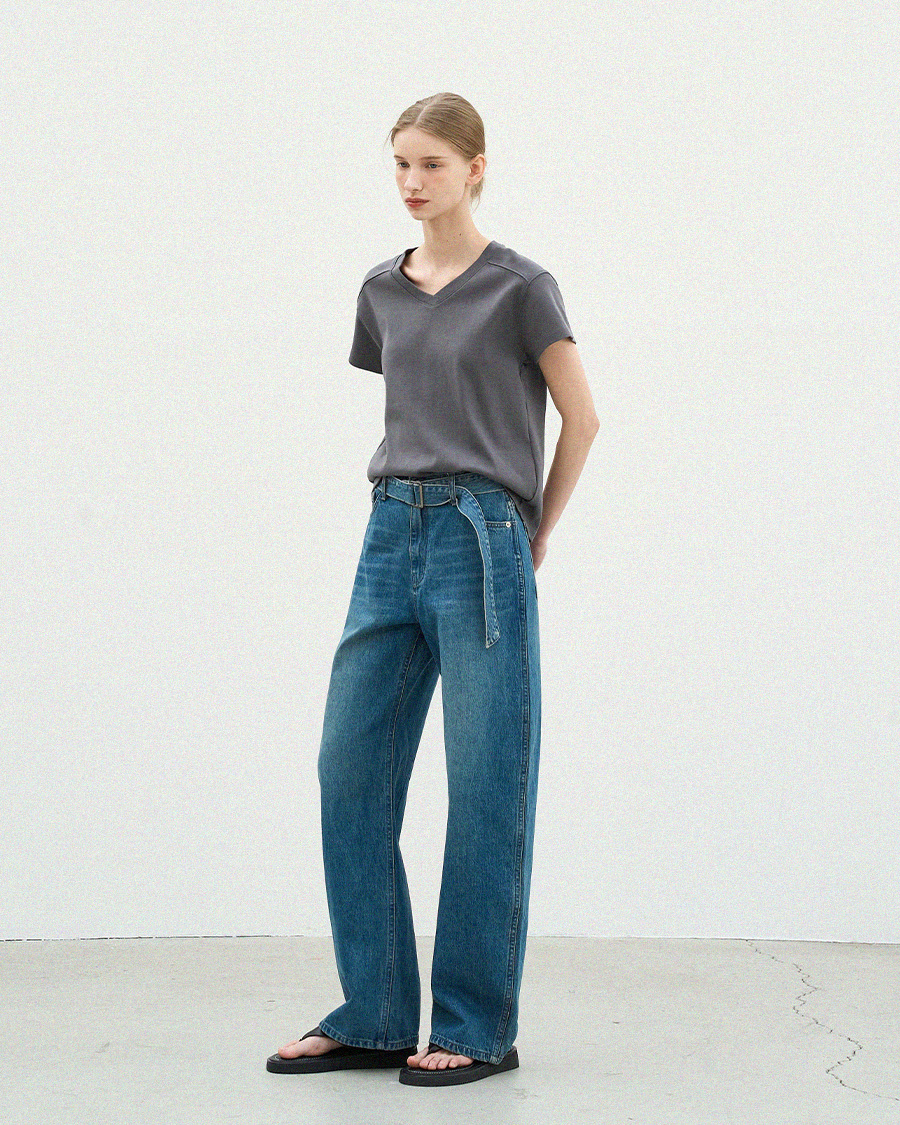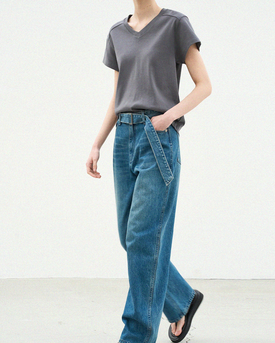 - 목선을 자연스럽게 살려주는 브이넥 라인으로 깔끔한 무드를 보여줍니다
