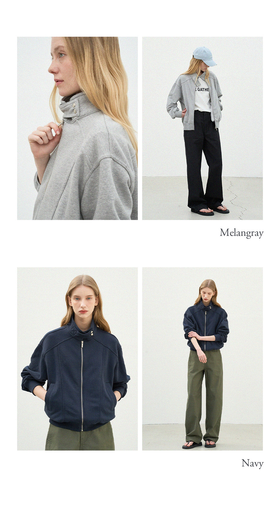 - 집업과 스냅 디테일이 조화를 이루어 미니멀하면서도 포인트 있는 디자인 입니다