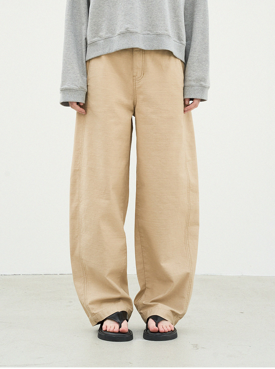 - 힙 라인은 둥글게 감싸면서 허벅지에 여유를 두고 자연스럽게 떨어지는 실루엣이 돋보입니다