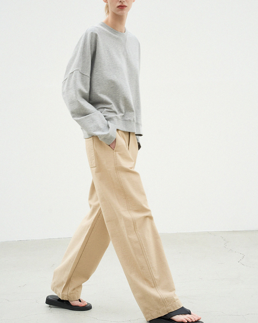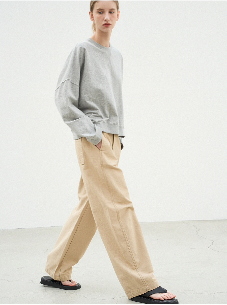 - 표면에 자연스러운 결이 살아있는 슬랍코튼 소재로 탄탄하면서도 드라이한 터치감으로 안정적인 착용감을 선사합니다
