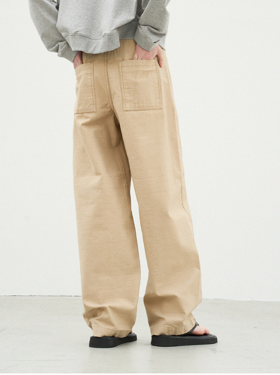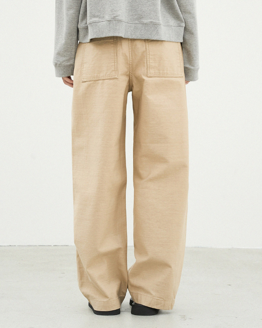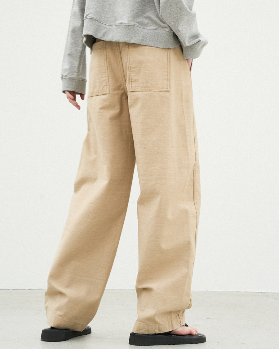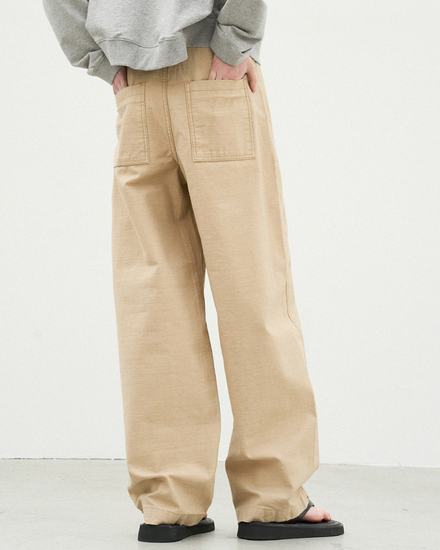 - 백사틴 원단으로 내구성이 좋고 마찰이나 헤짐에 강하며, 형태안정성이 좋아 오래 입어도 변형이 적고 관리가 쉬워 데일리 웨어에 적합한 소재입니다