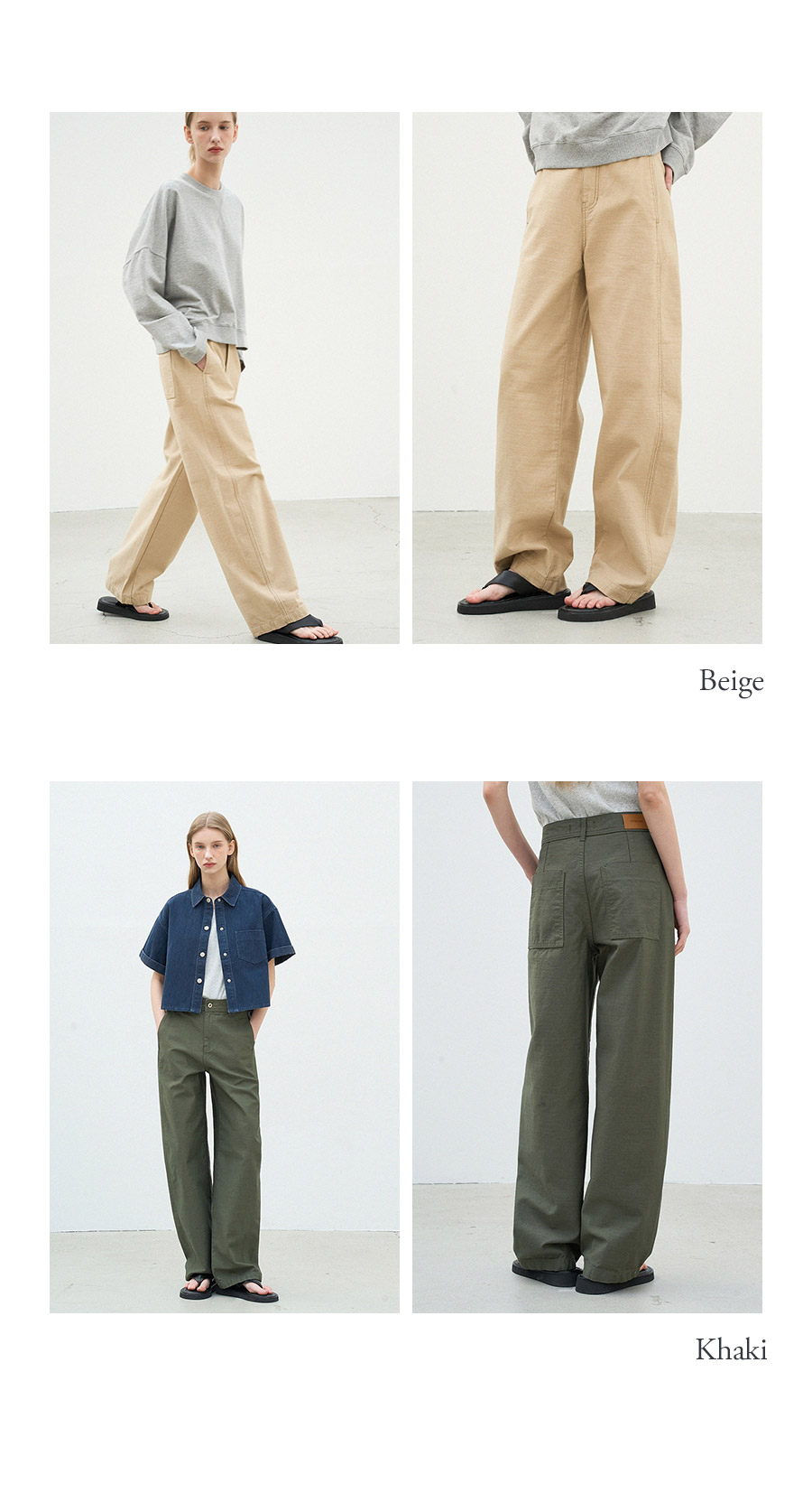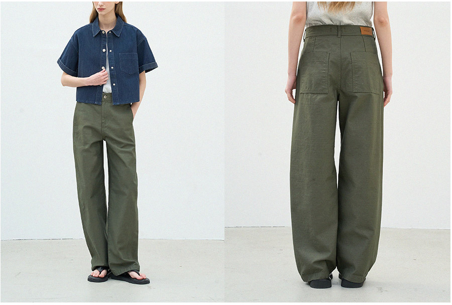 - 백사틴 원단으로 내구성이 좋고 마찰이나 헤짐에 강하며, 형태안정성이 좋아 오래 입어도 변형이 적고 관리가 쉬워 데일리 웨어에 적합한 소재입니다