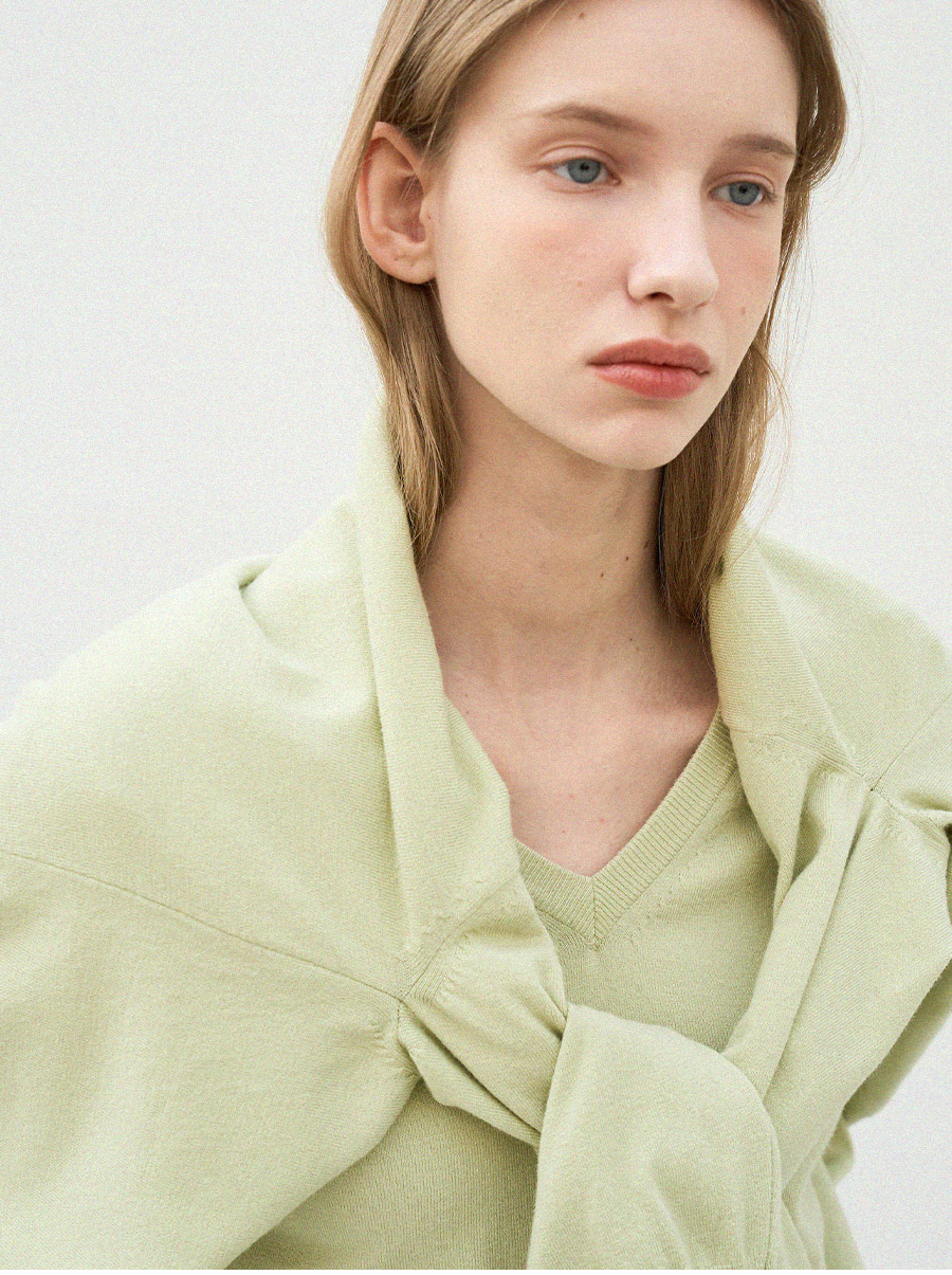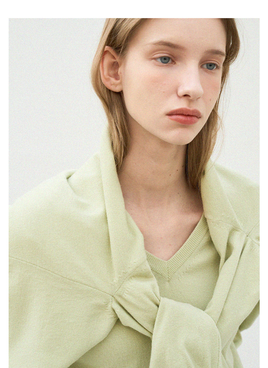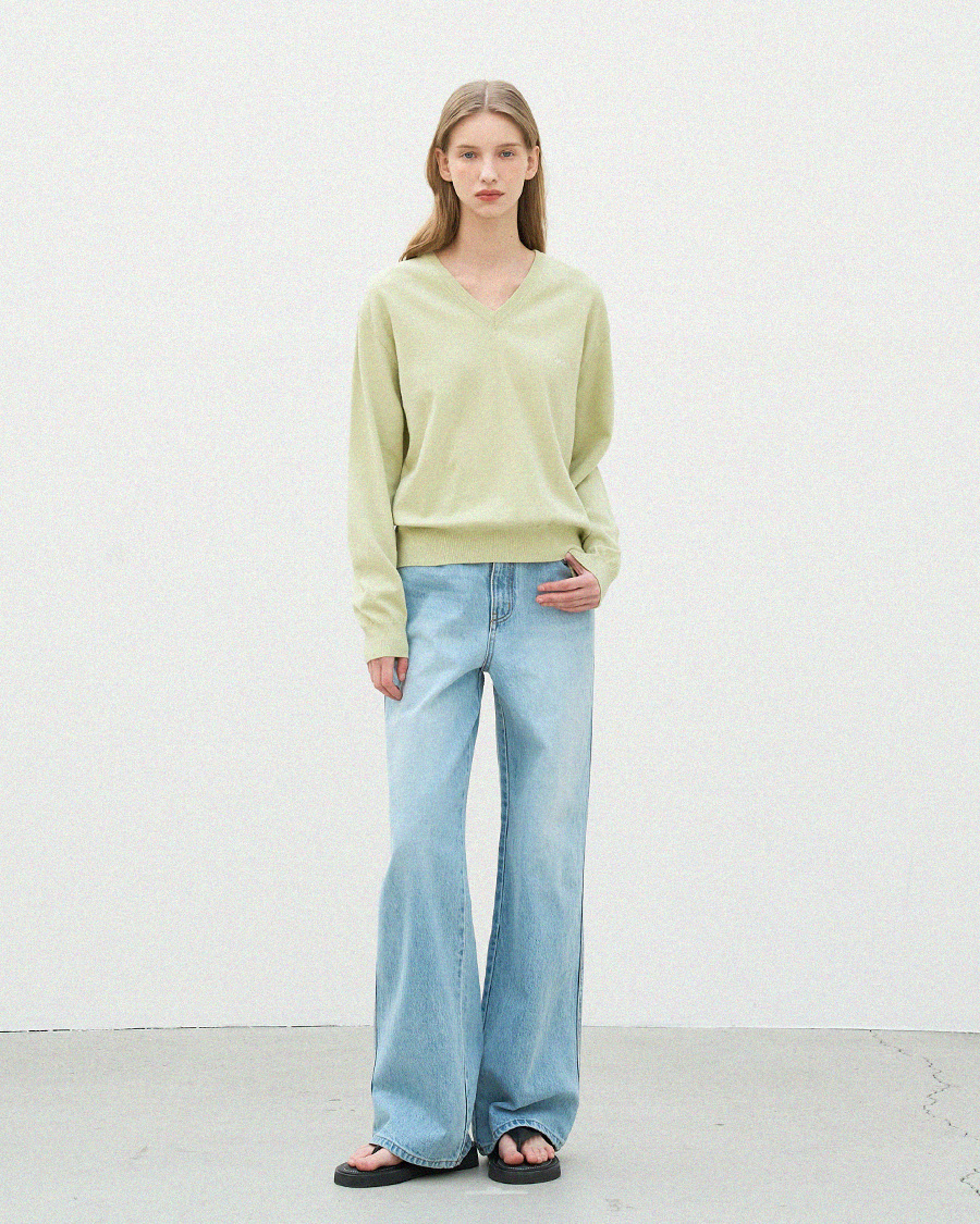- 자연스럽게 파인 브이넥 라인이 목선을 깔끔하게 연출합니다