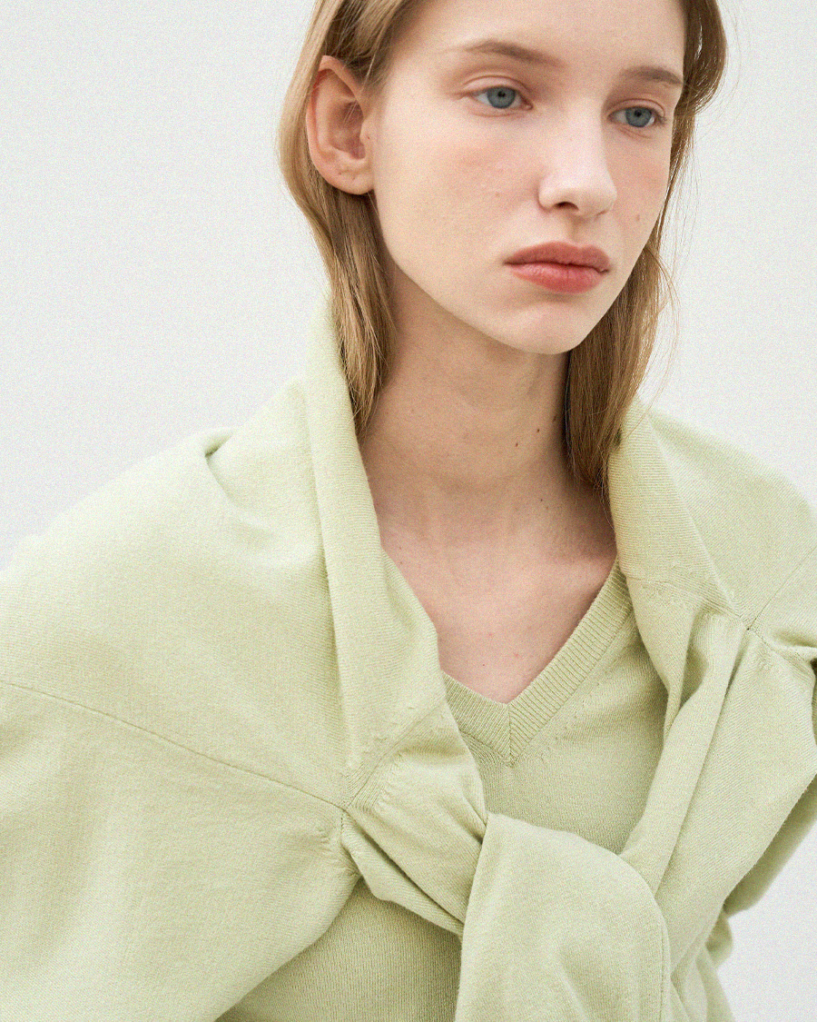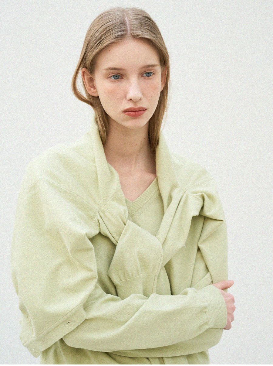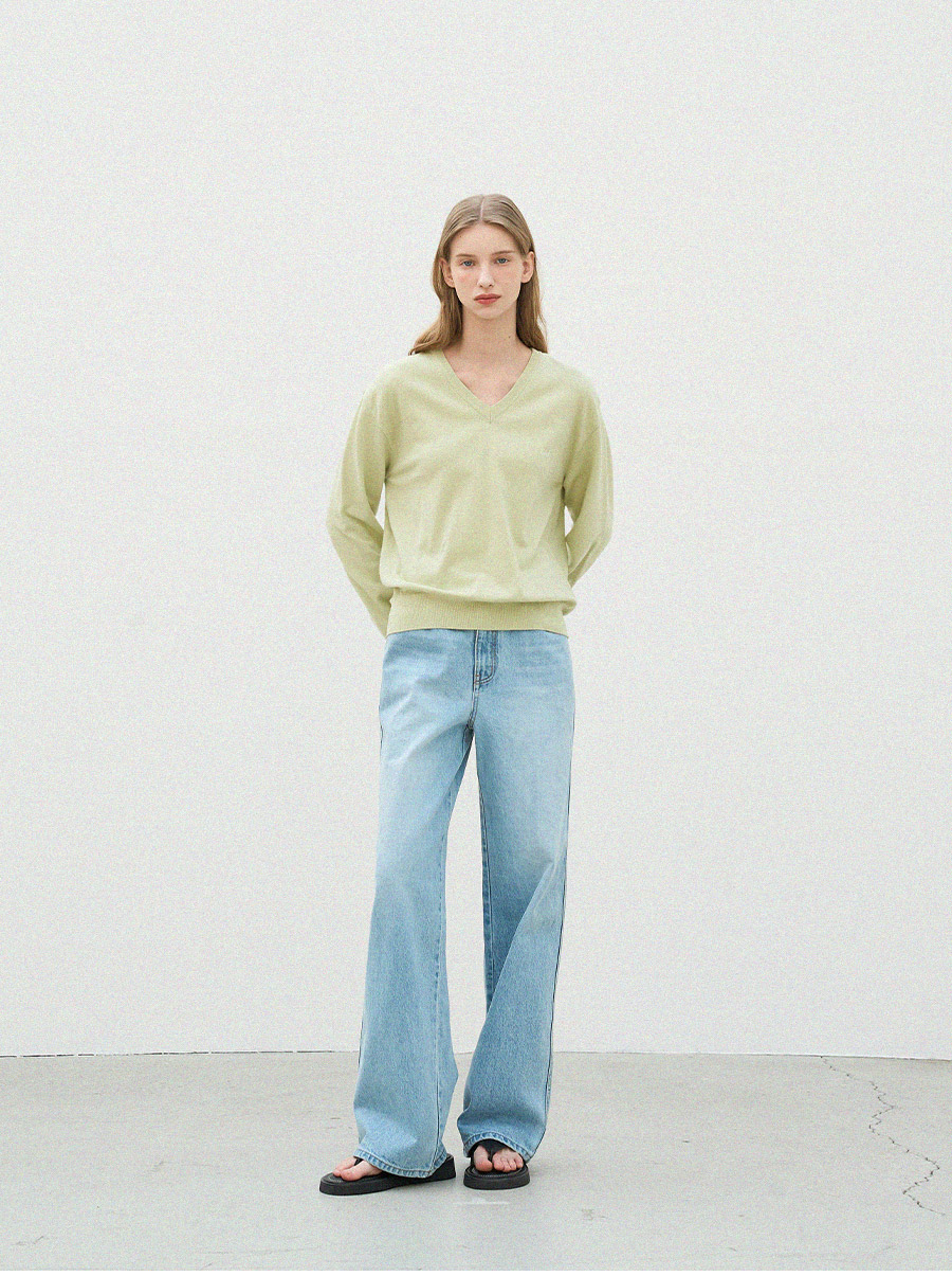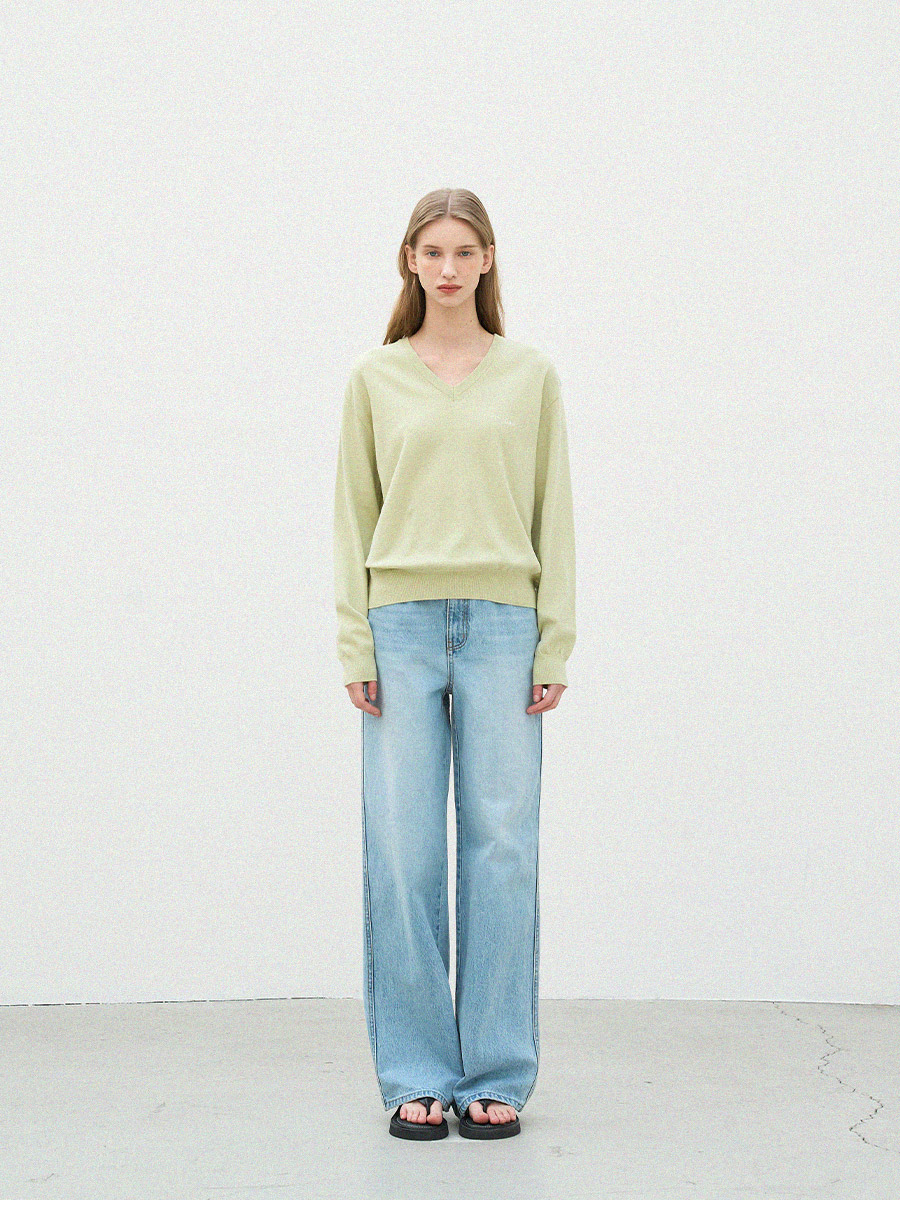 - 자연스럽게 파인 브이넥 라인이 목선을 깔끔하게 연출합니다