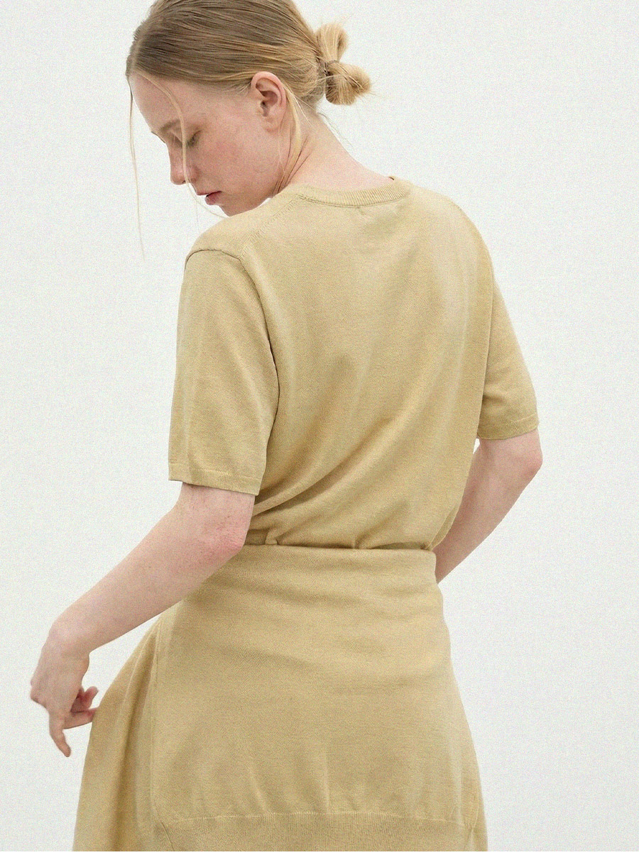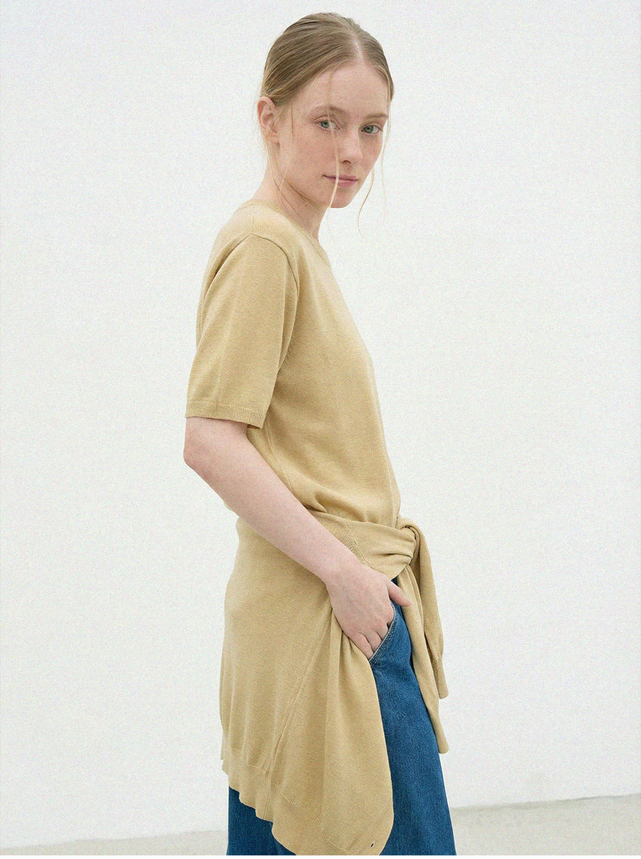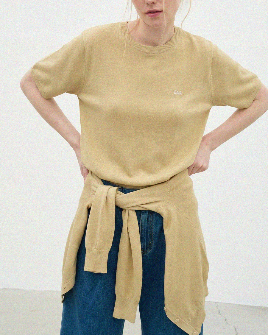 - 하프 슬리브 디자인으로 가볍고 세련된 무드를 완성합니다