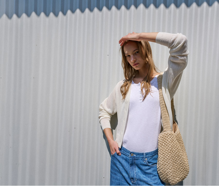 - 은은한 비침이 느껴지는 내추럴한 텍스처로 여름 시즌에 어울리는 가벼운 분위기를 연출합니다
