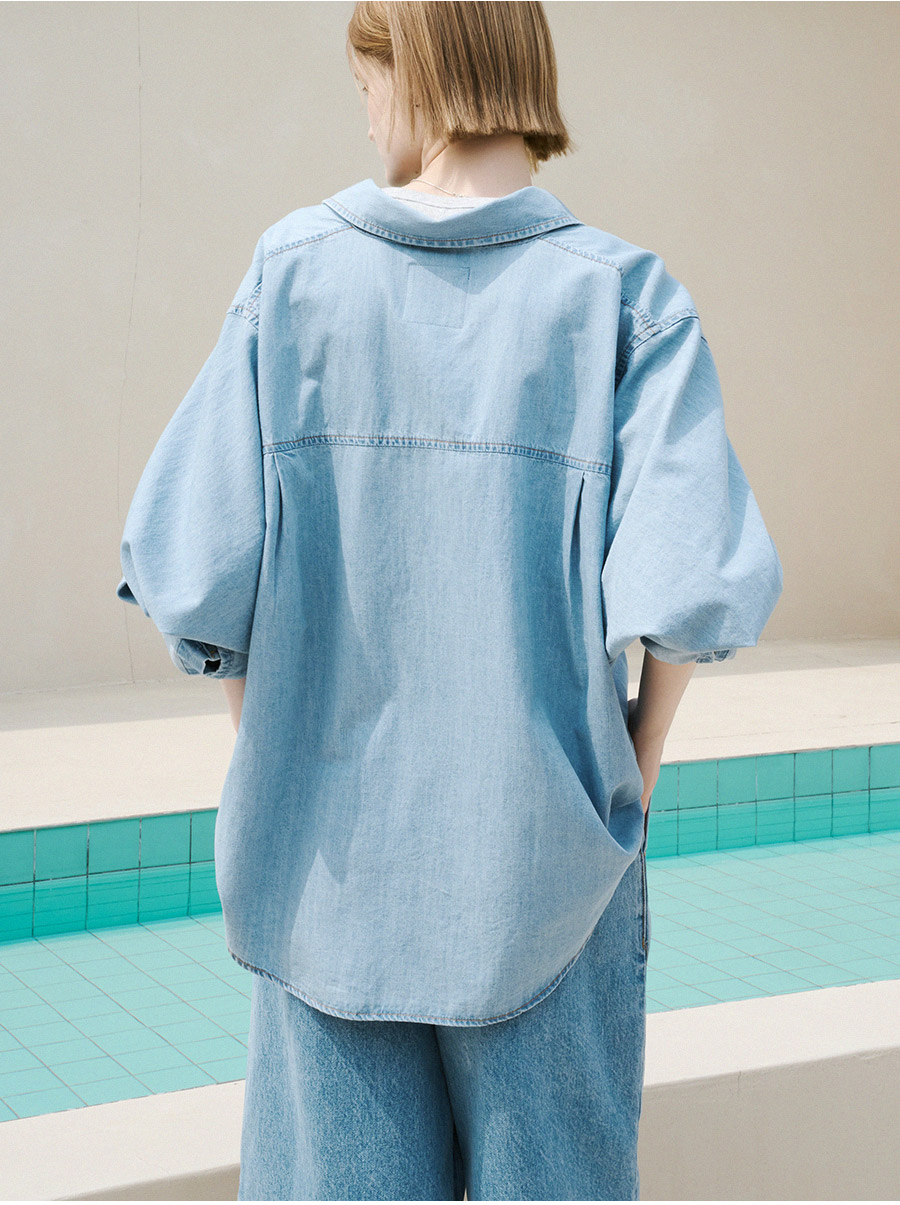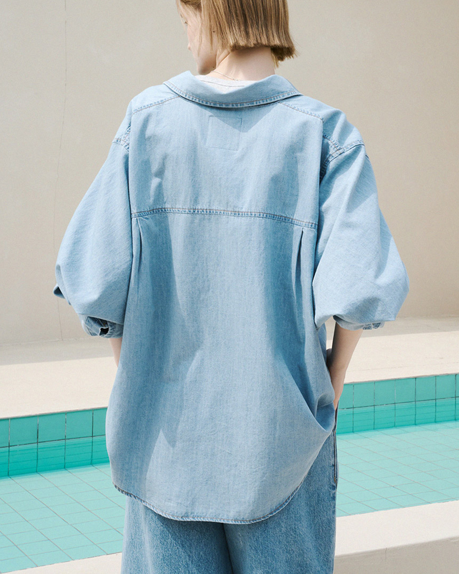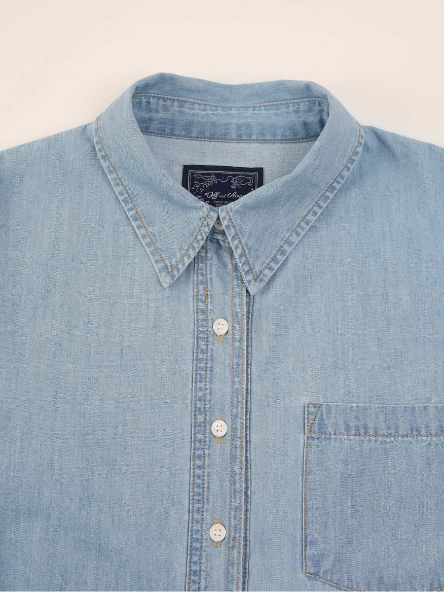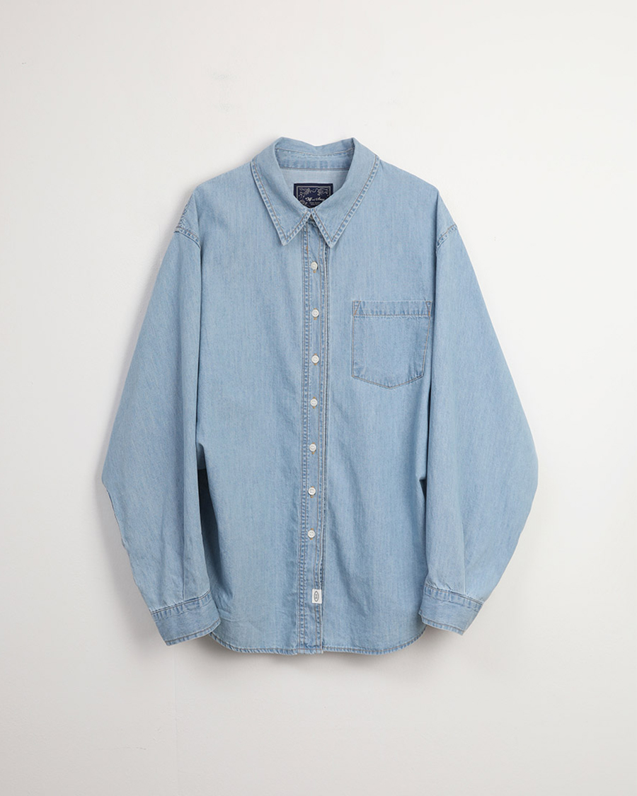 - 유니크한 패턴이 돋보이는 감각적인 데님 셔츠 입니다