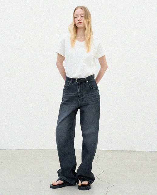 절개 포인트 와이드 데님 팬츠_black