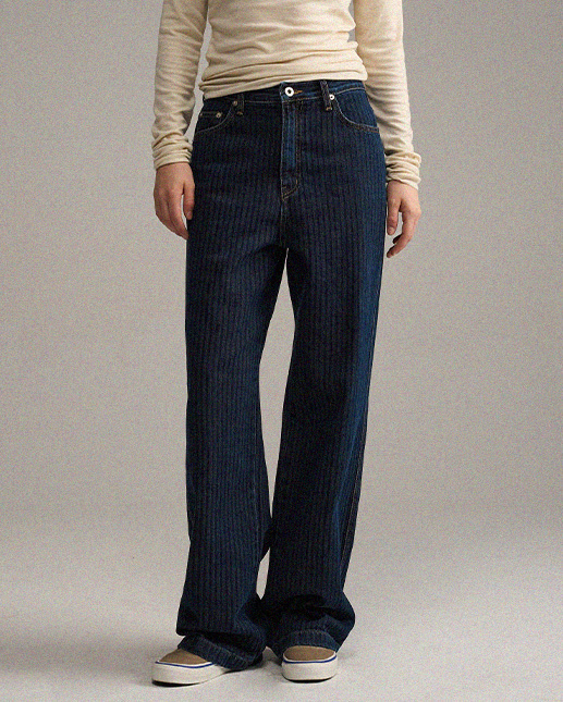 스트라이프 데님 팬츠_dark blue