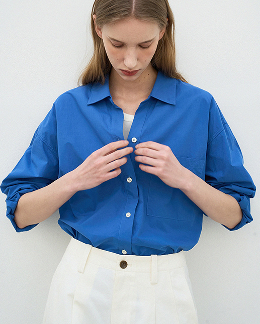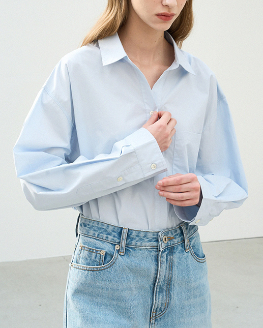 니즈 포켓 자수 코튼 셔츠_skyblue