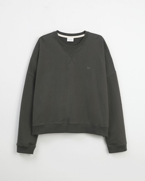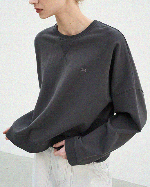 드롭 라이트 자수 스웻 셔츠_charcoal