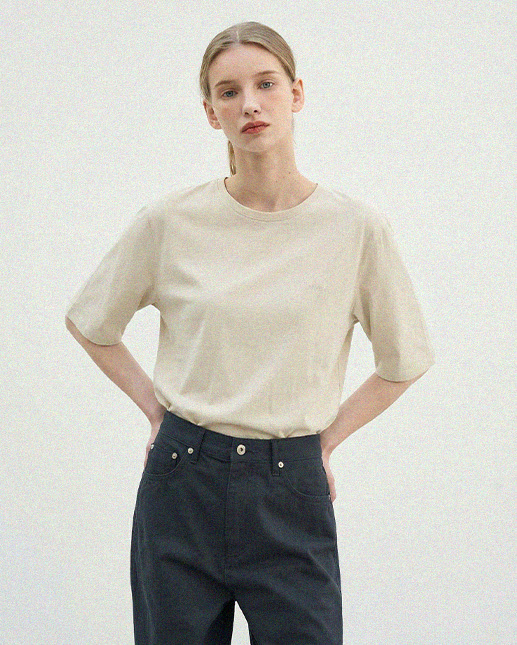 베이직 실켓 코튼 5부 티셔츠_butter beige