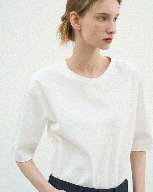 베이직 실켓 코튼 5부 티셔츠_ivory